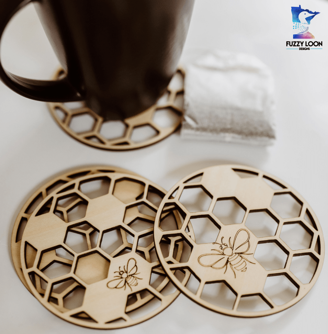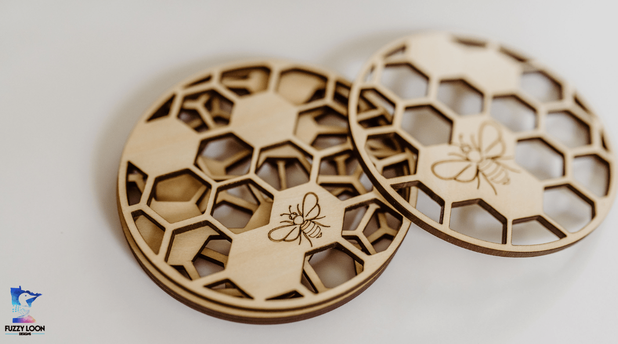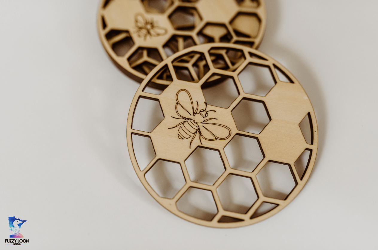 Honeycomb Wood Bumble Bee Coaster Set