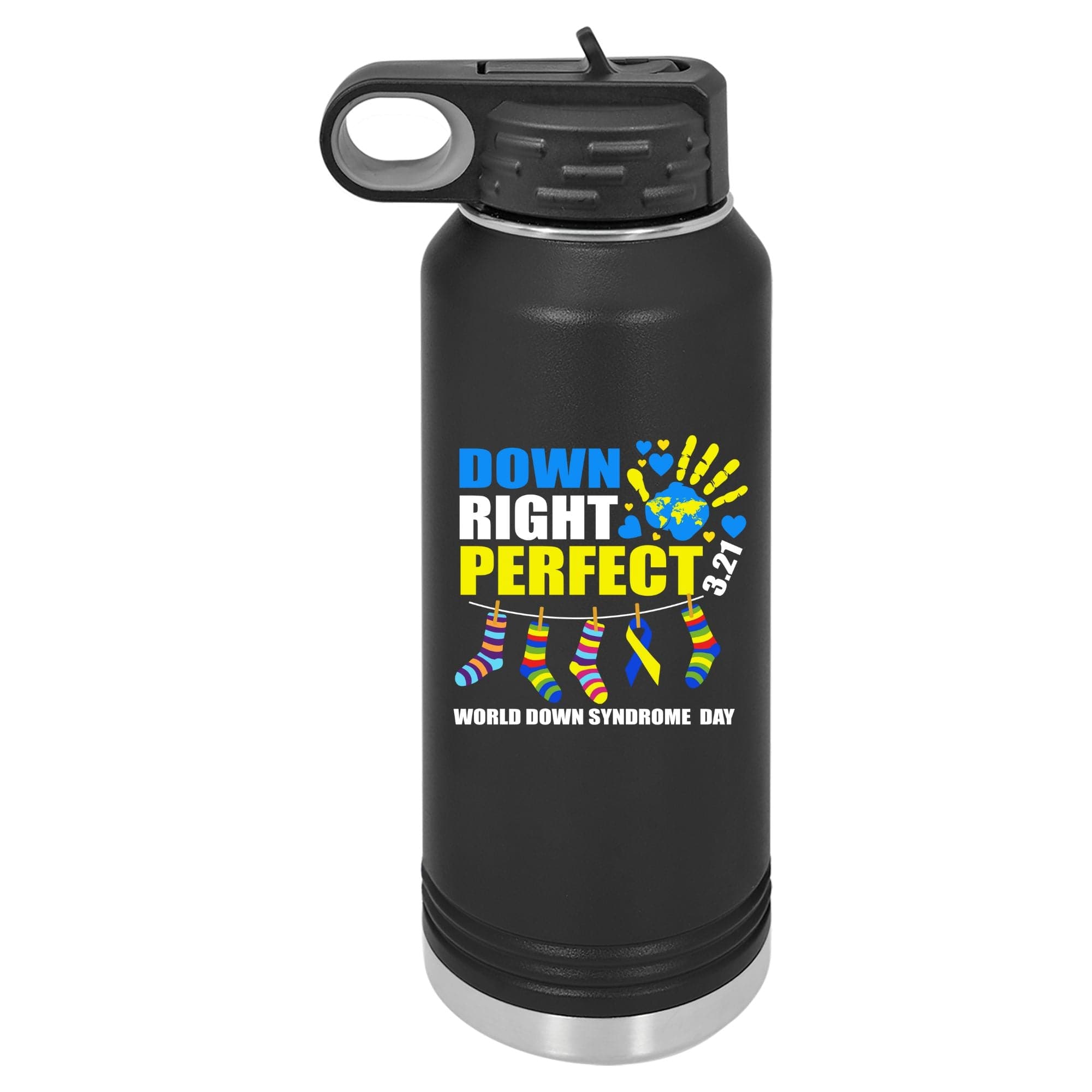 Down Right Perfect. Down Syndrome Awareness Water Bottle.