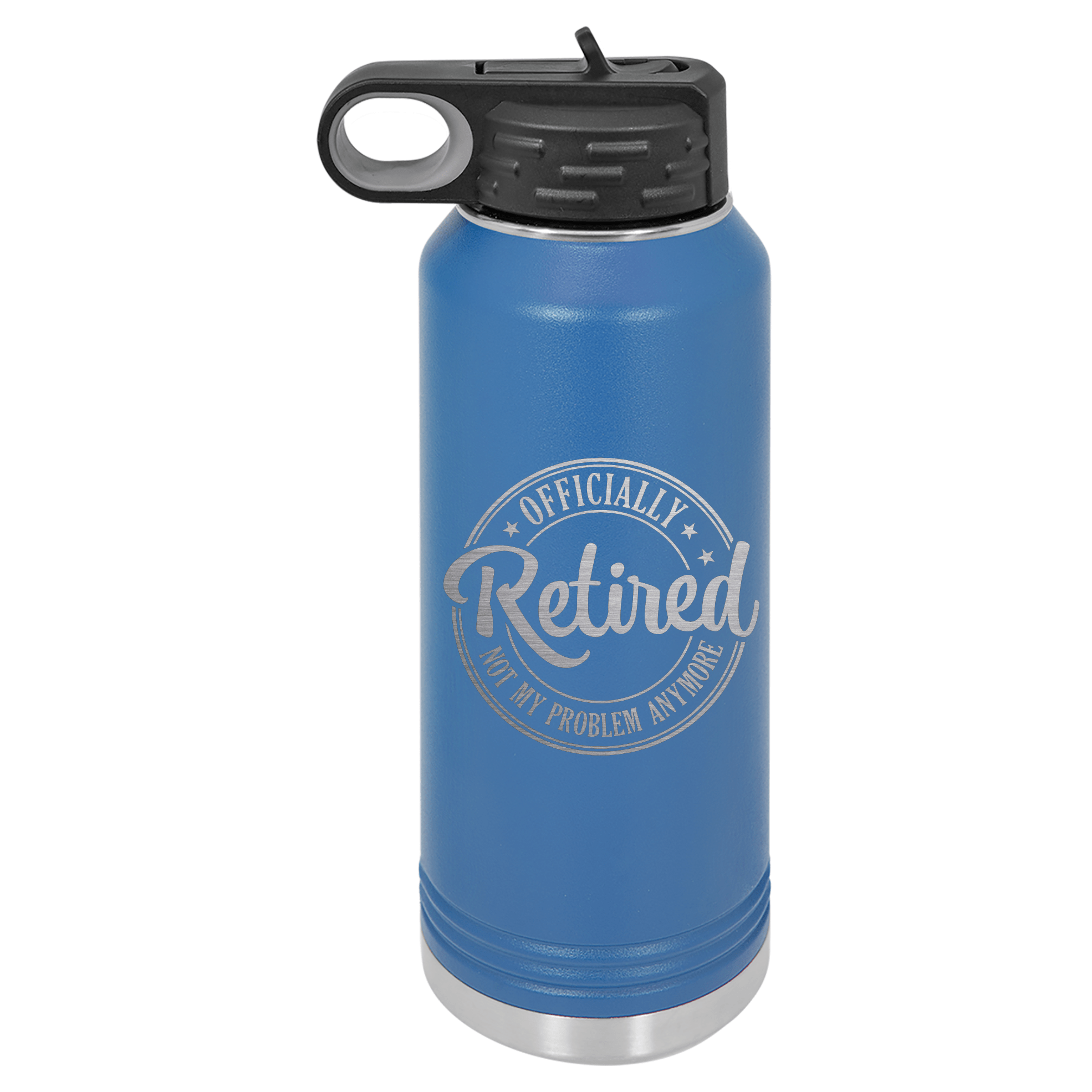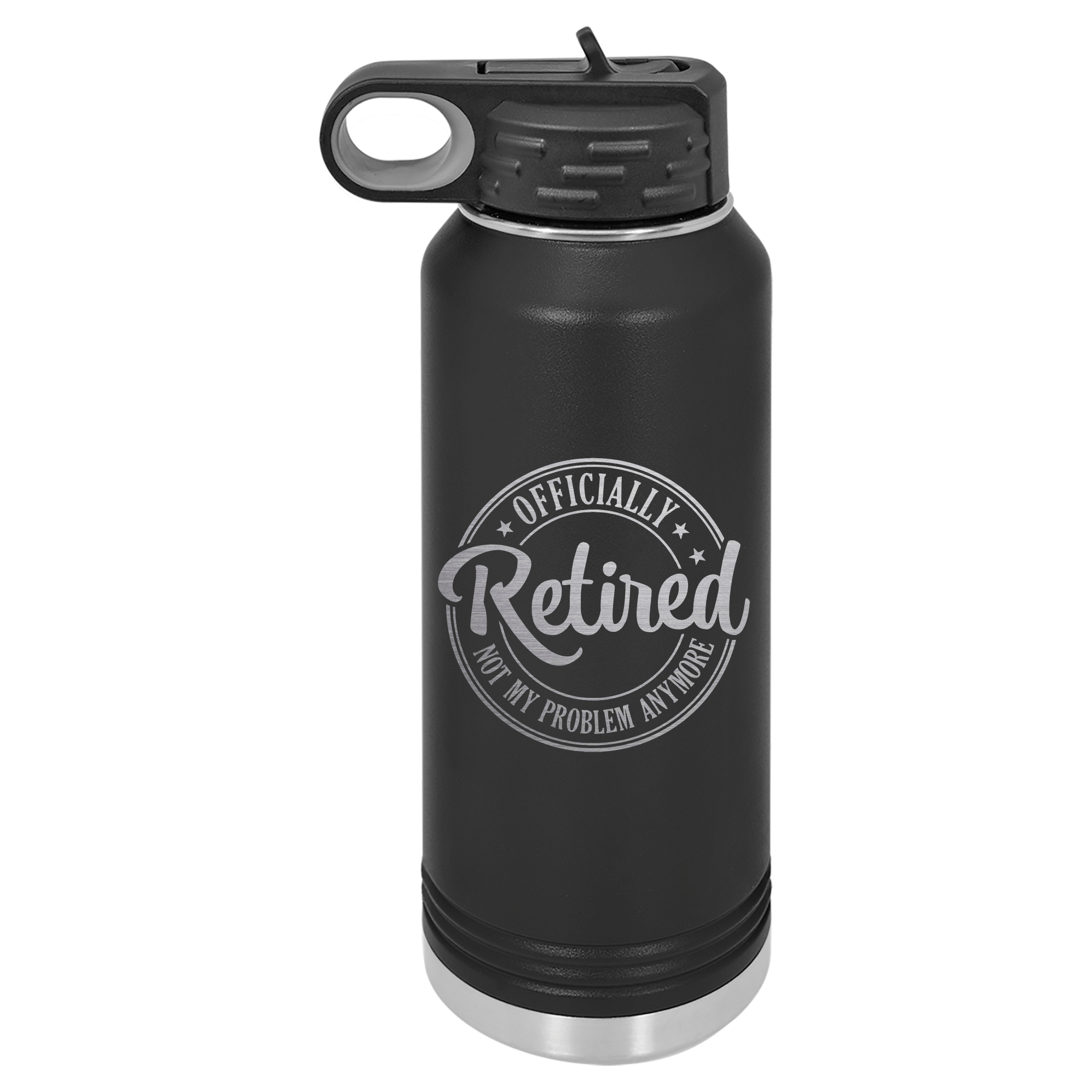 Celebrate a special retirement with this Officially Retired Not My Problem Anymore | ENGRAVED Insulated Bottle with Straw and Spout! It's the perfect gift to commemorate that special milestone in a special someone's life. This unique retirement gift will remind them of their hard-earned freedom every time they take a sip. Cheers!