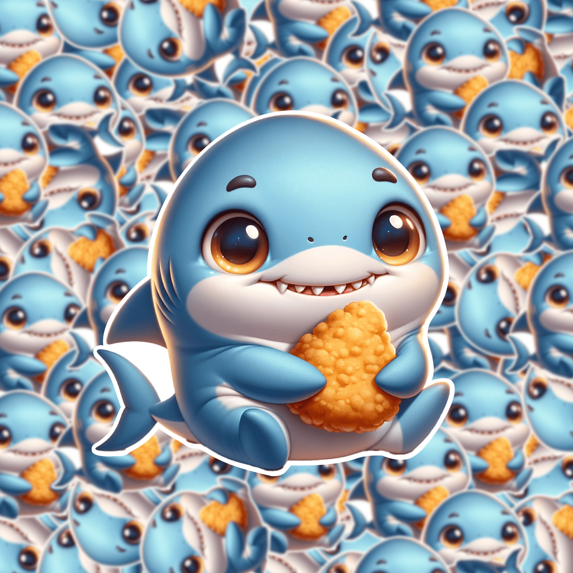 Add a playful touch to any surface with this adorable Shark Eating a Chicken Nugget sticker! Perfect for kids (and kids at heart), this sticker features a lovable shark munching on a chicken nugget. Bring a smile to anyone's face with this quirky sticker.