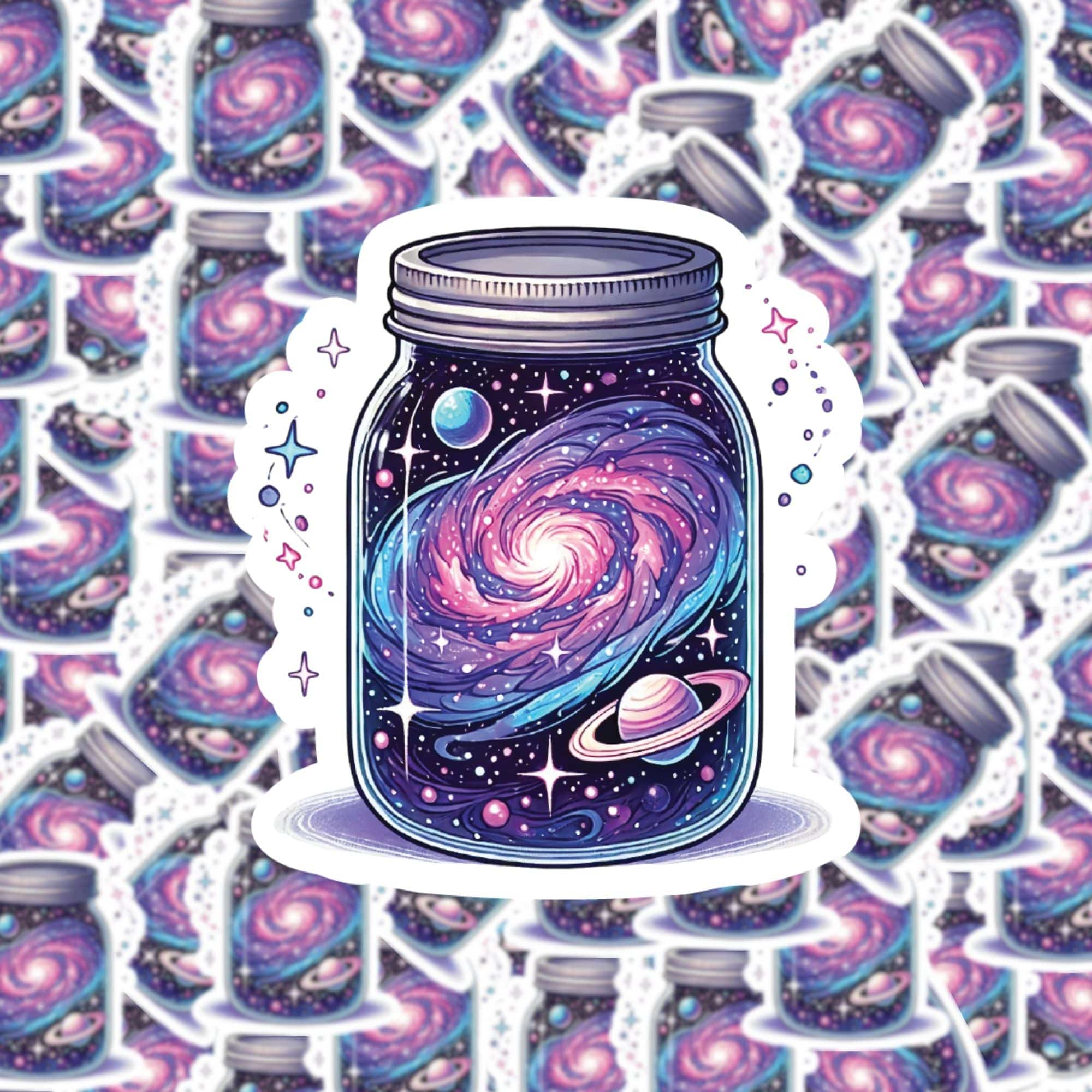 Experience the beauty of the cosmos with our Galaxy in a Jar Sticker. Featuring stunning pinks, purples, and blues, this mason jar sticker will transport you to a galaxy far, far away. Perfect for adding a touch of magic to any surface. Own your own piece of the universe today!