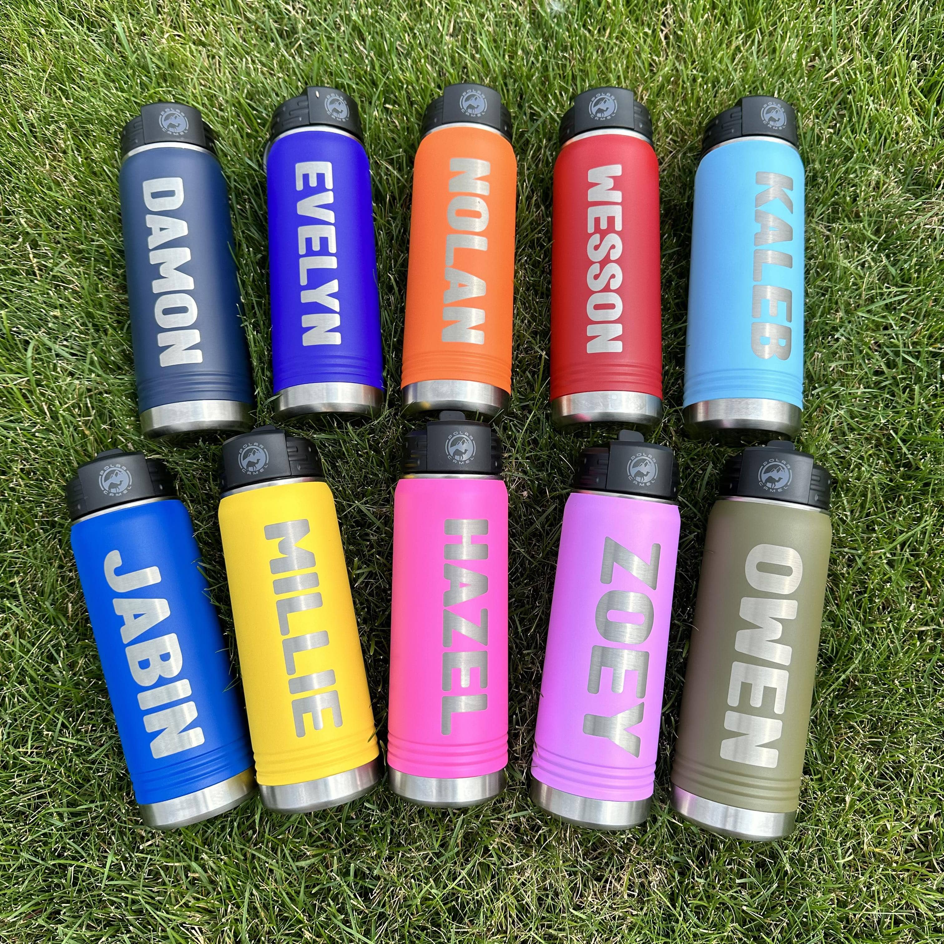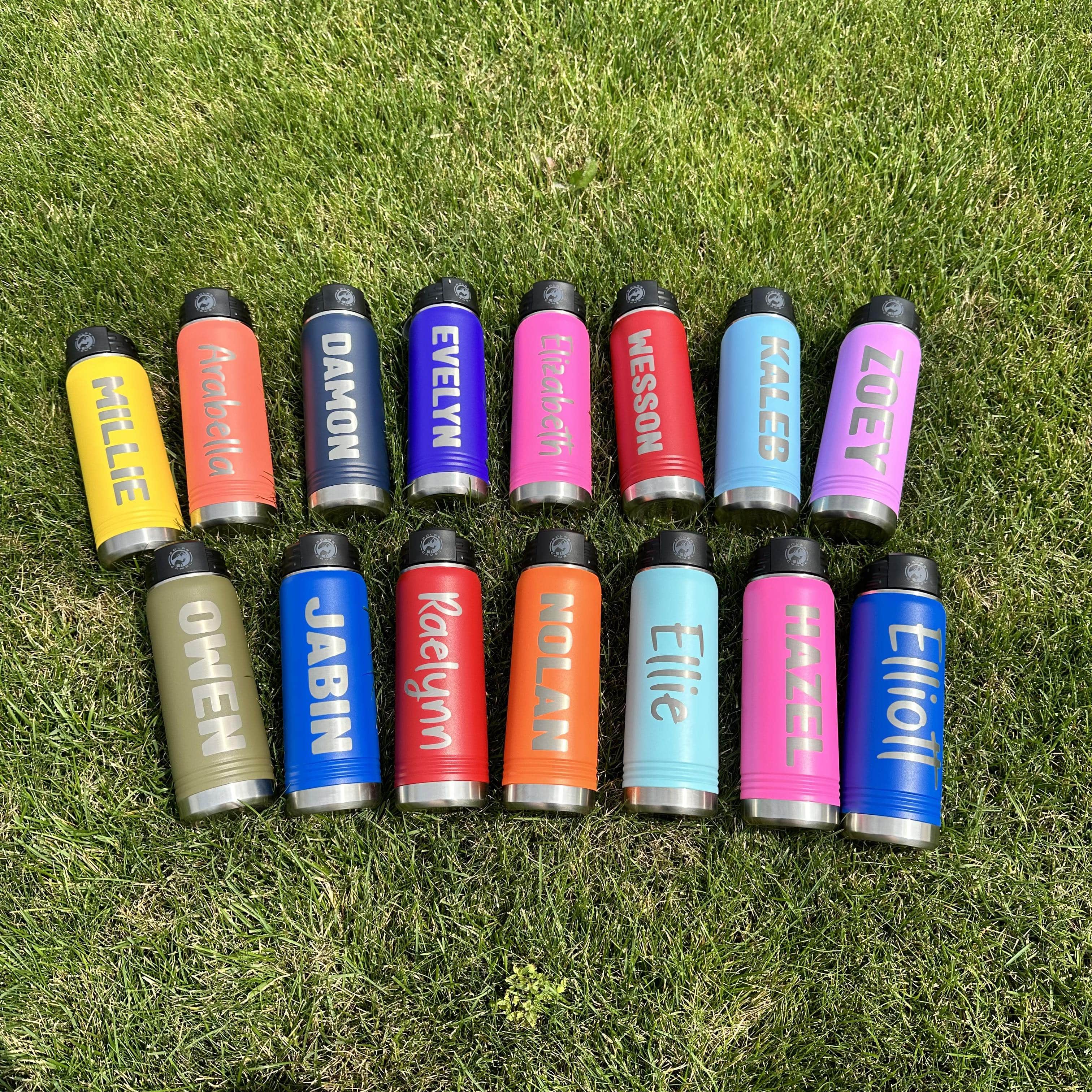 Personalize Your Water Bottle!  Choose from 17 water bottle colors and let us know if you'd like your font to be in "ALL CAPS BLOCK" or Handwritten Font. (Please note, the handwritten font will not be in all caps).