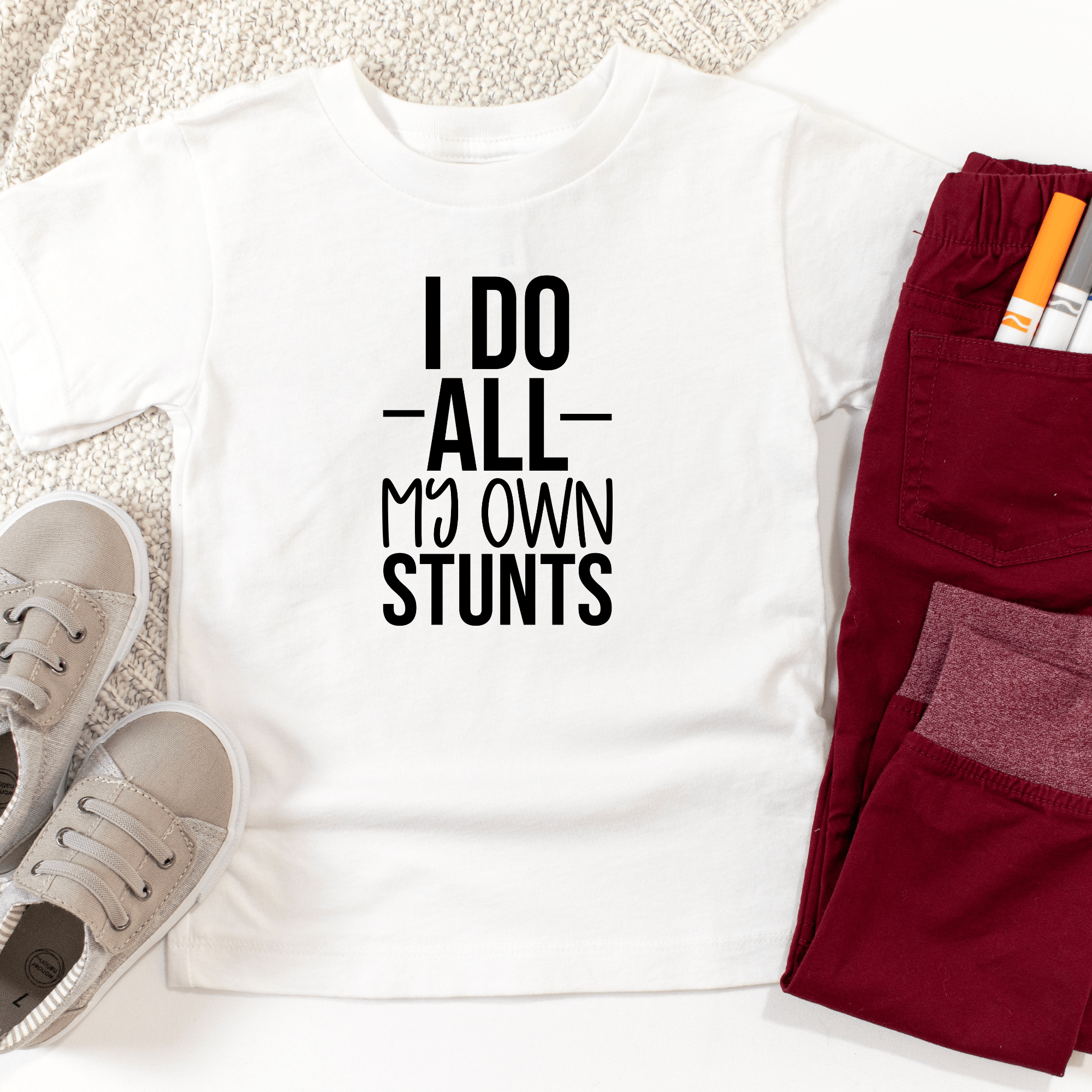 I Do All My Own Stunts Kids T-Shirt