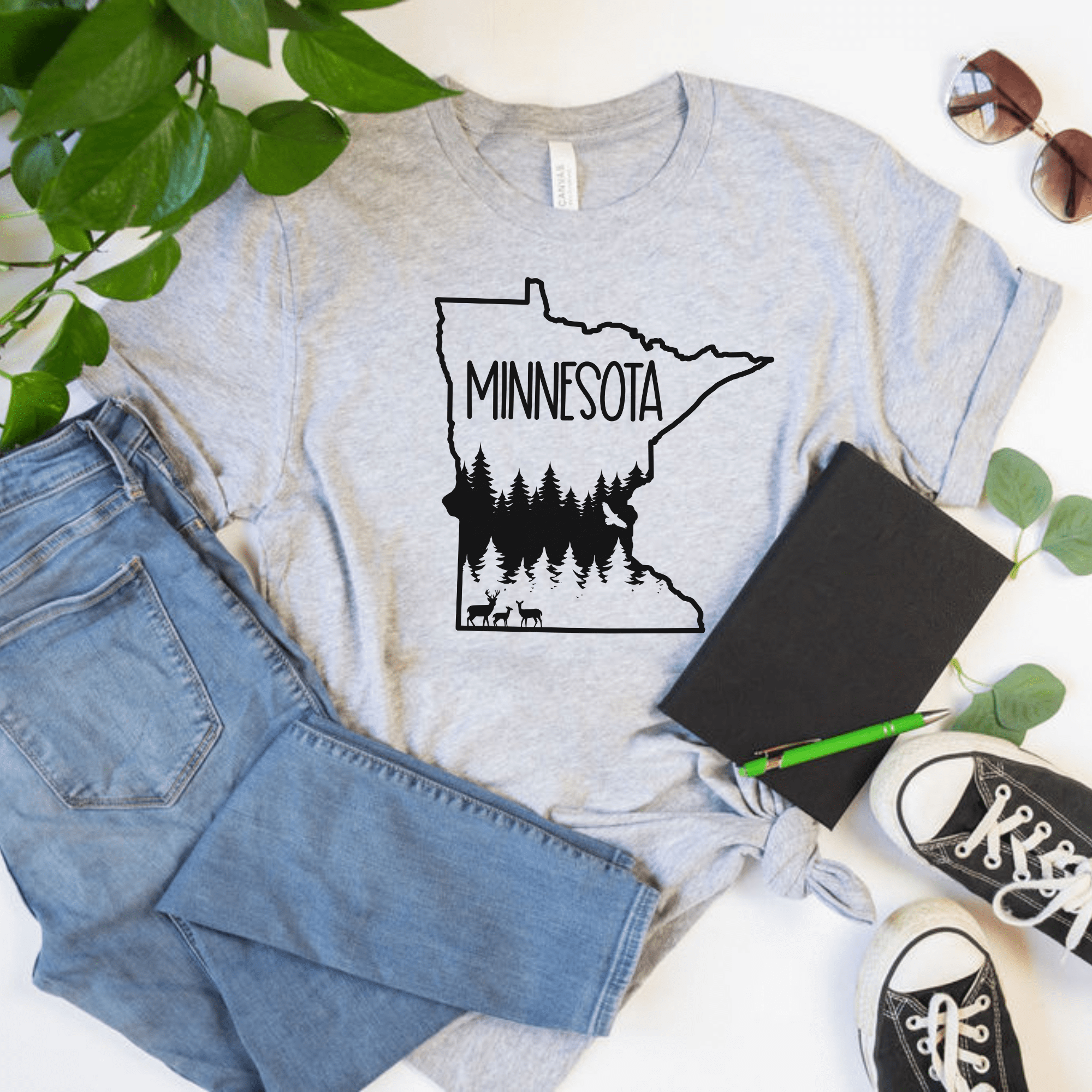 This Minnesota Trees Design T-shirt is the perfect way to show your love for the great outdoors! The stunning Minnesota landscape design is sure to attract the attention of all who see it, making it the ideal choice for any outdoor enthusiast!