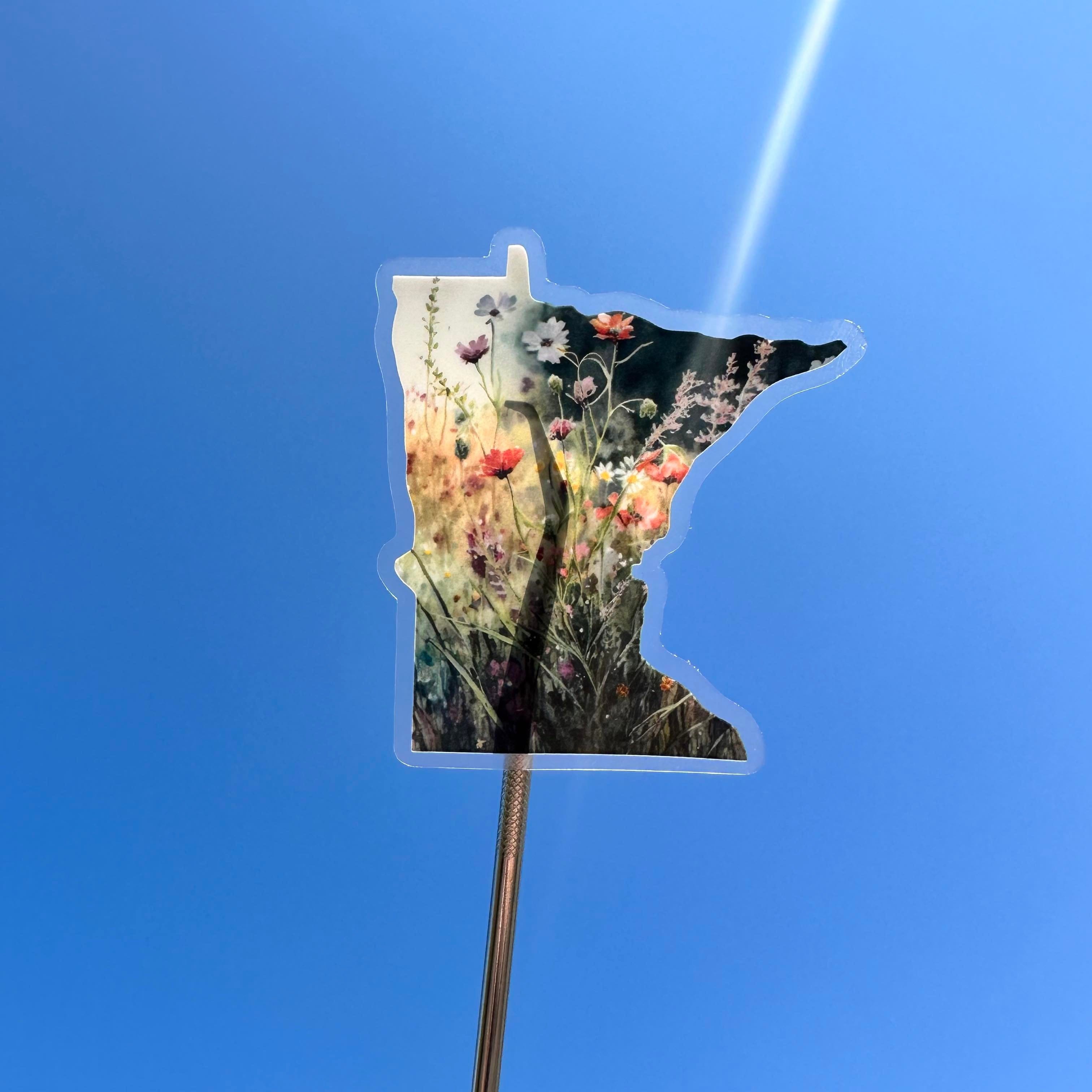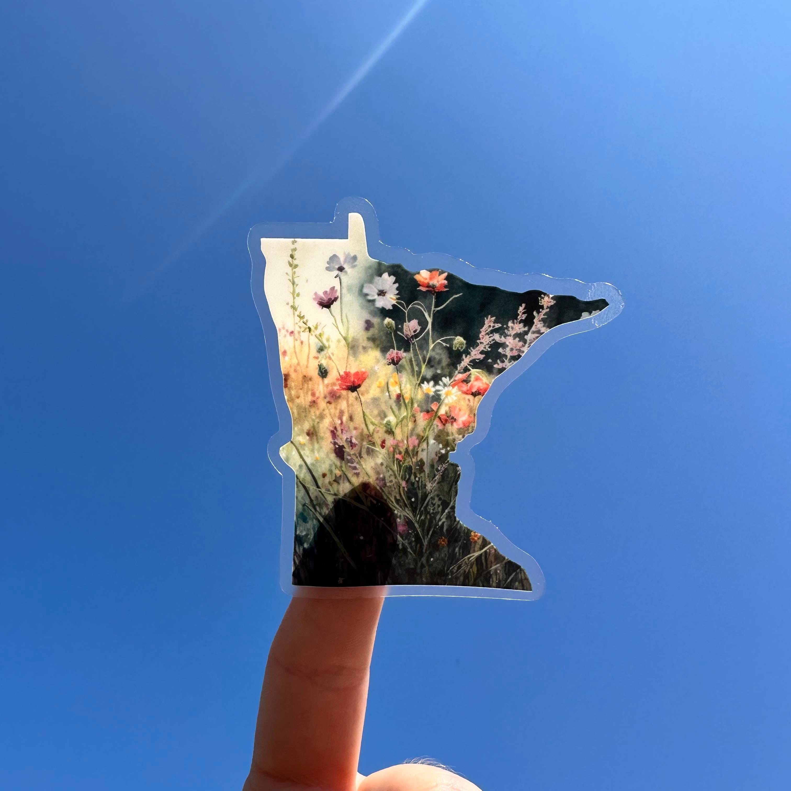 This beautiful floral Minnesota shaped sticker is transparent and will look good on many colored surfaces such as water bottles, laptops, cars, etc.