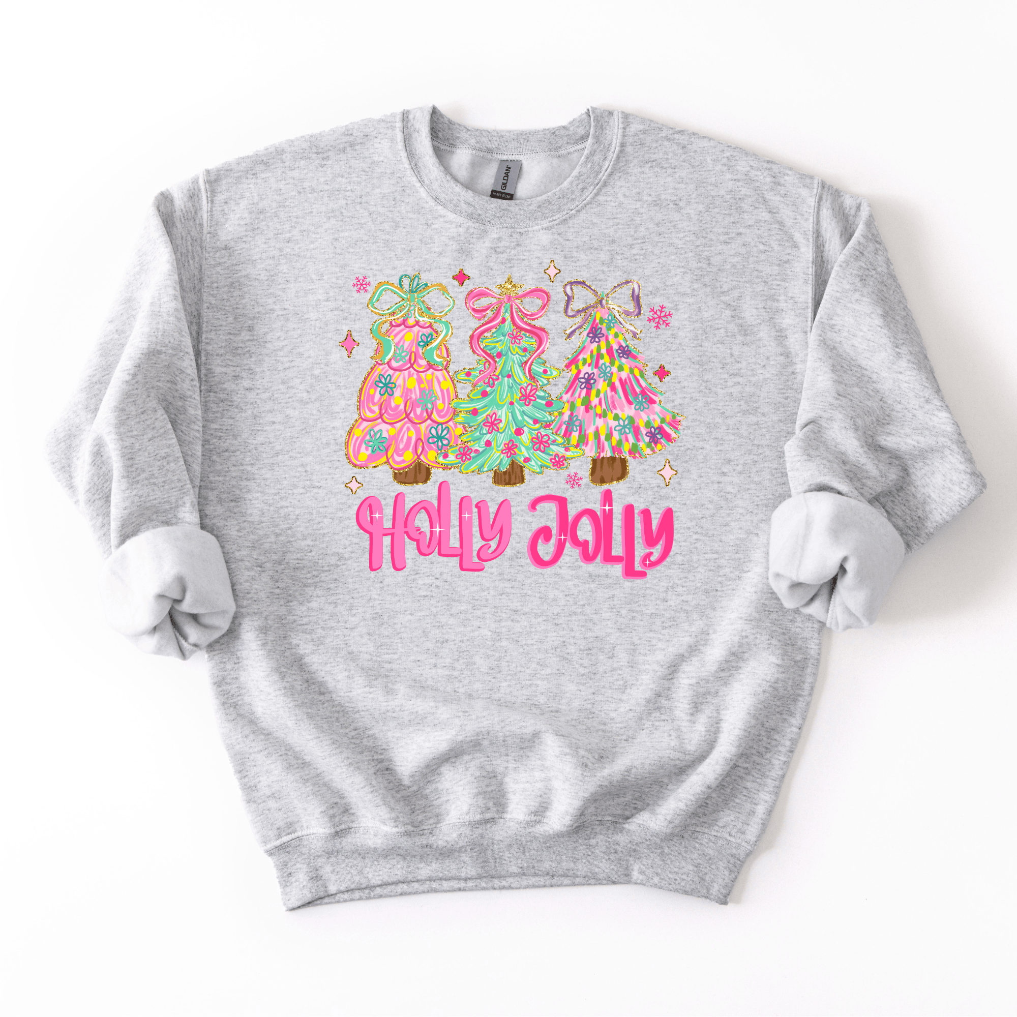 Wrap yourself in holiday cheer with this vibrant crew neck sweatshirt featuring bold pinks and greens that scream festive fun. Perfect for spreading Holly Jolly vibes all season long, this comfy essential pairs cozy comfort with eye-catching color that stands out at every celebration. Whether you're decking the halls or just keeping spirits bright, this playful piece brings instant holiday magic to your everyday wardrobe.