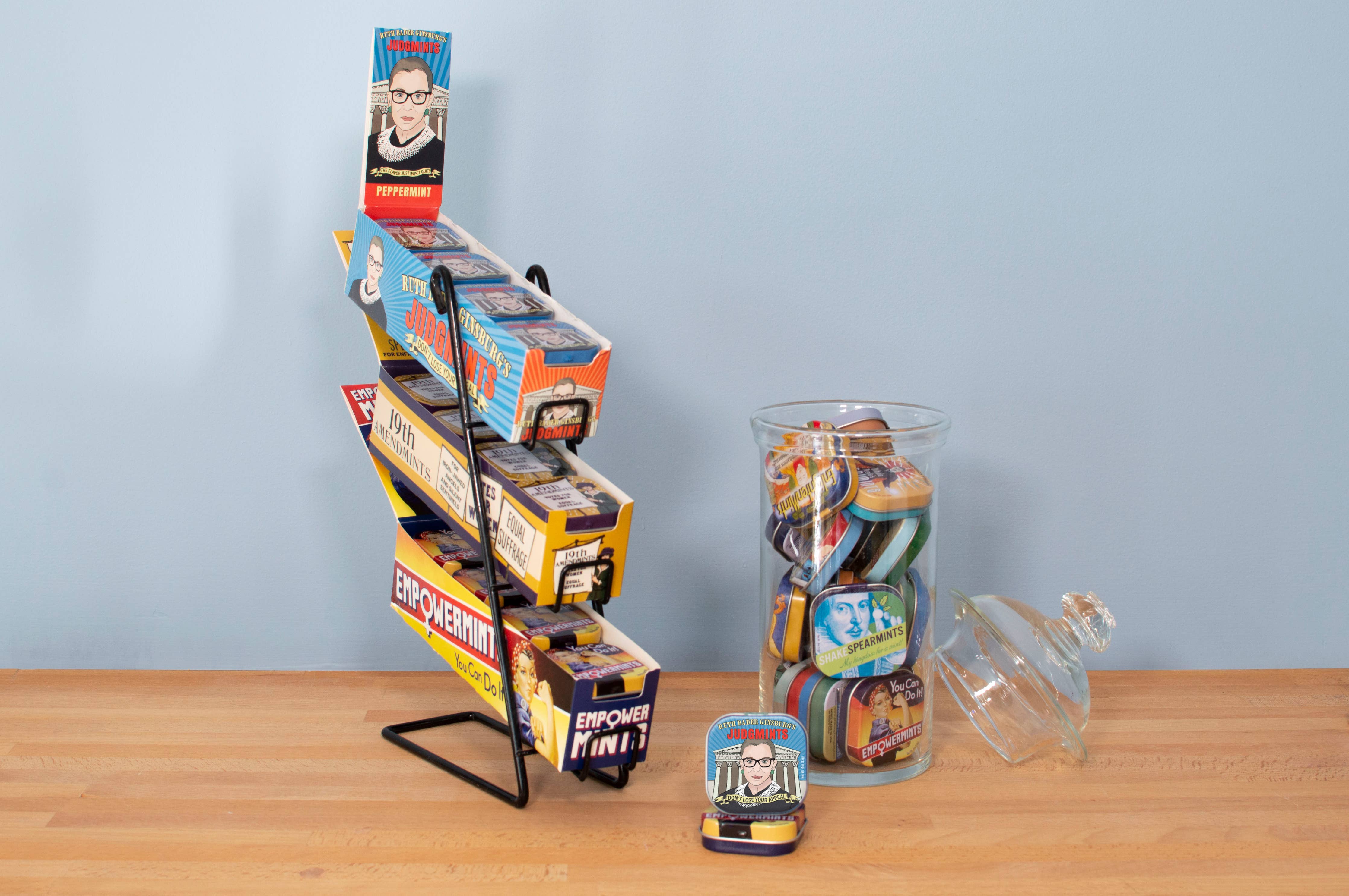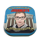 Oyez! Oyez! Oyez! For breath that is truly Supreme, look no further than these Ruth Bader Ginsburg mints. Keep one under your robe, stash a spare in your chambers, and stay fresh at all times. Bold peppermint mints come in a reusable tin measuring 1.75" x 1.75" x 0.5".