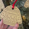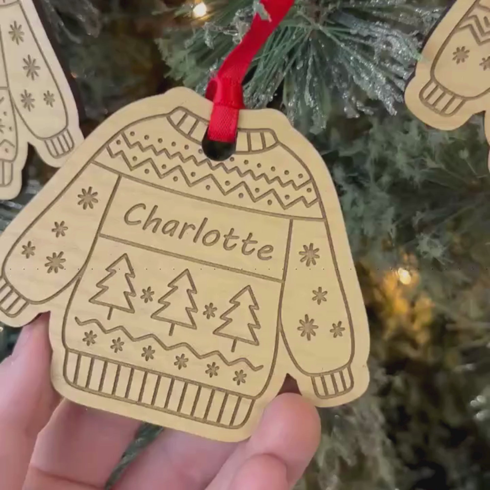 Celebrate the season with this charming personalized wood ornament, a treasured keepsake that brings warmth to your holiday décor. Measuring 3.25" tall and 3.75" wide, this festive piece features a delightful Christmas sweater design that captures the cozy spirit of the holidays. Perfect for displaying on your tree or gifting to loved ones, this customizable ornament lets you add a personal touch that makes it uniquely meaningful. Whether you're starting a new tradition or adding to your collection, this ornament serves as a heartfelt reminder of cherished moments and festive joy year after year.
