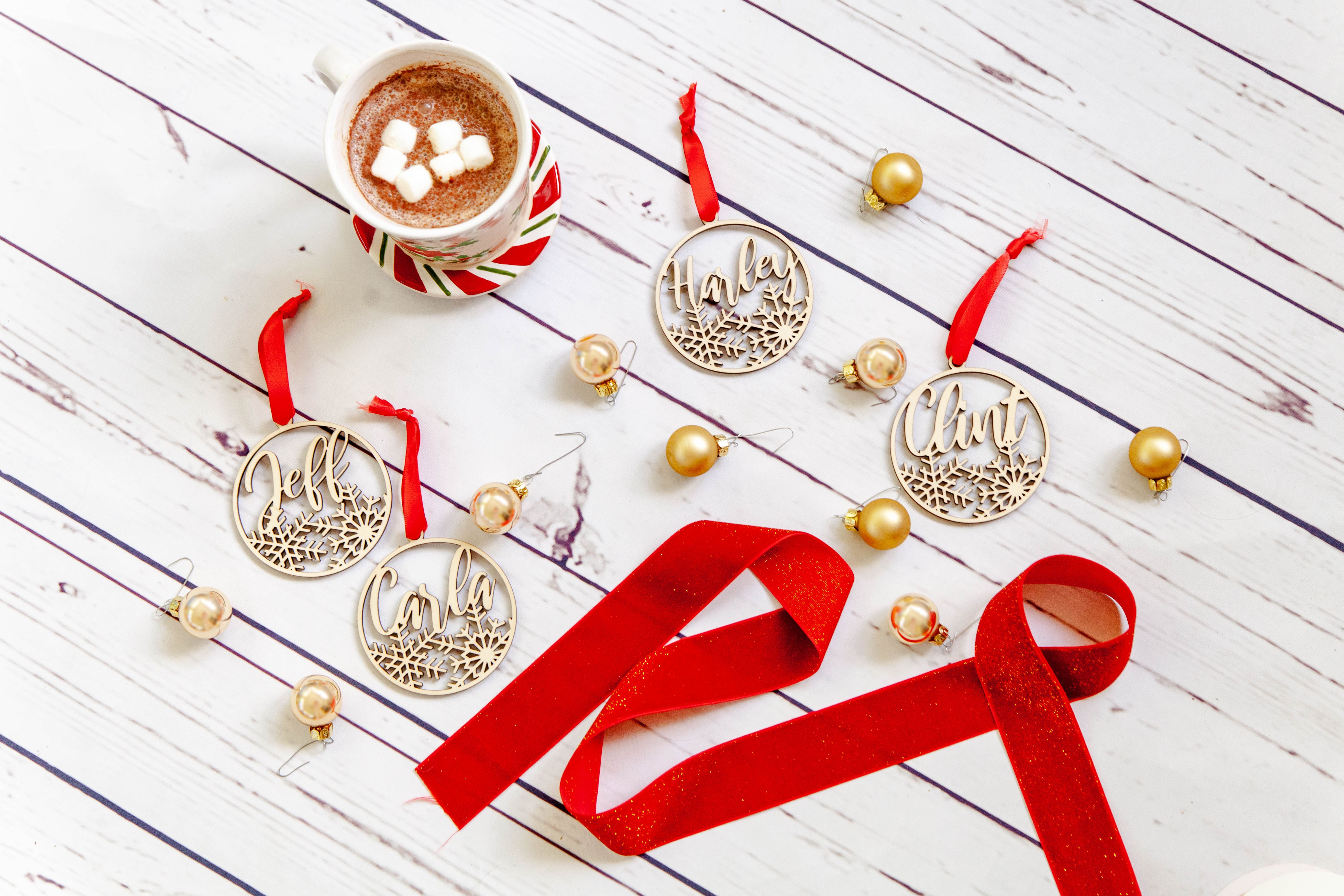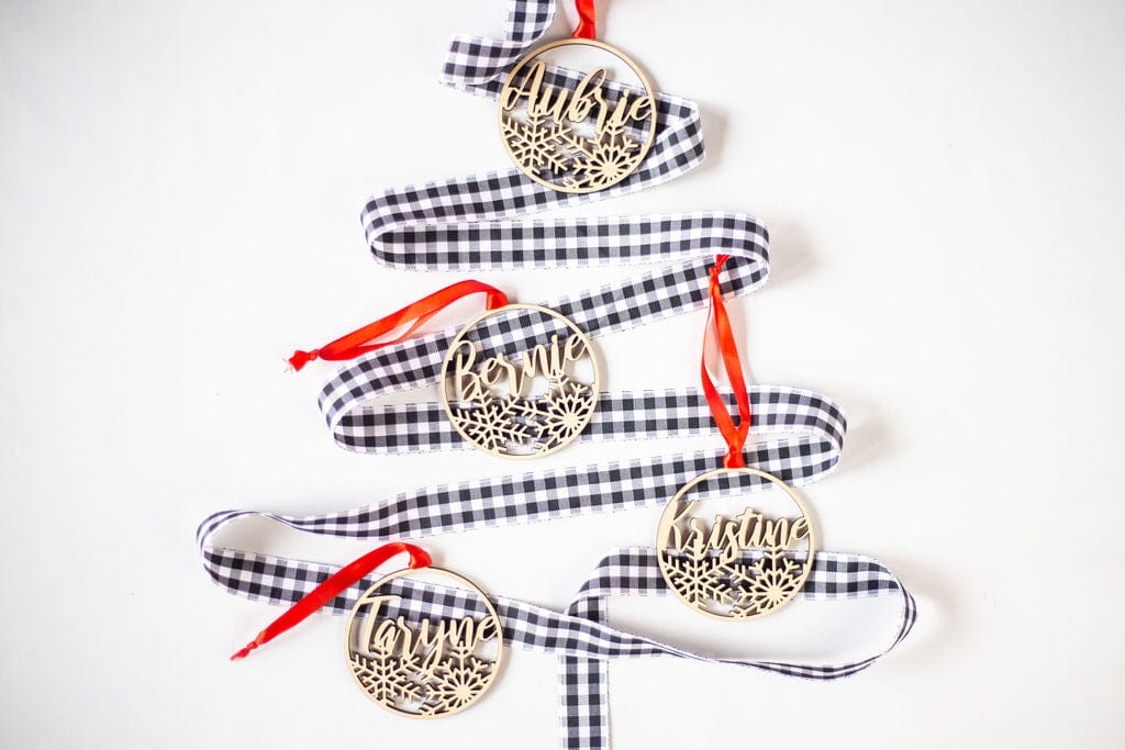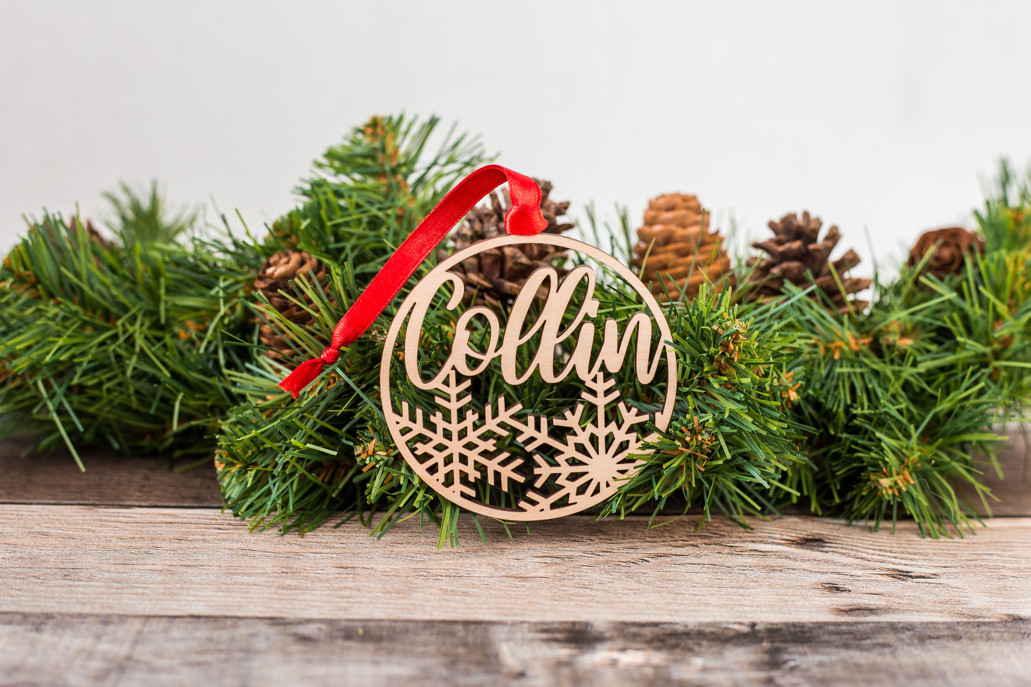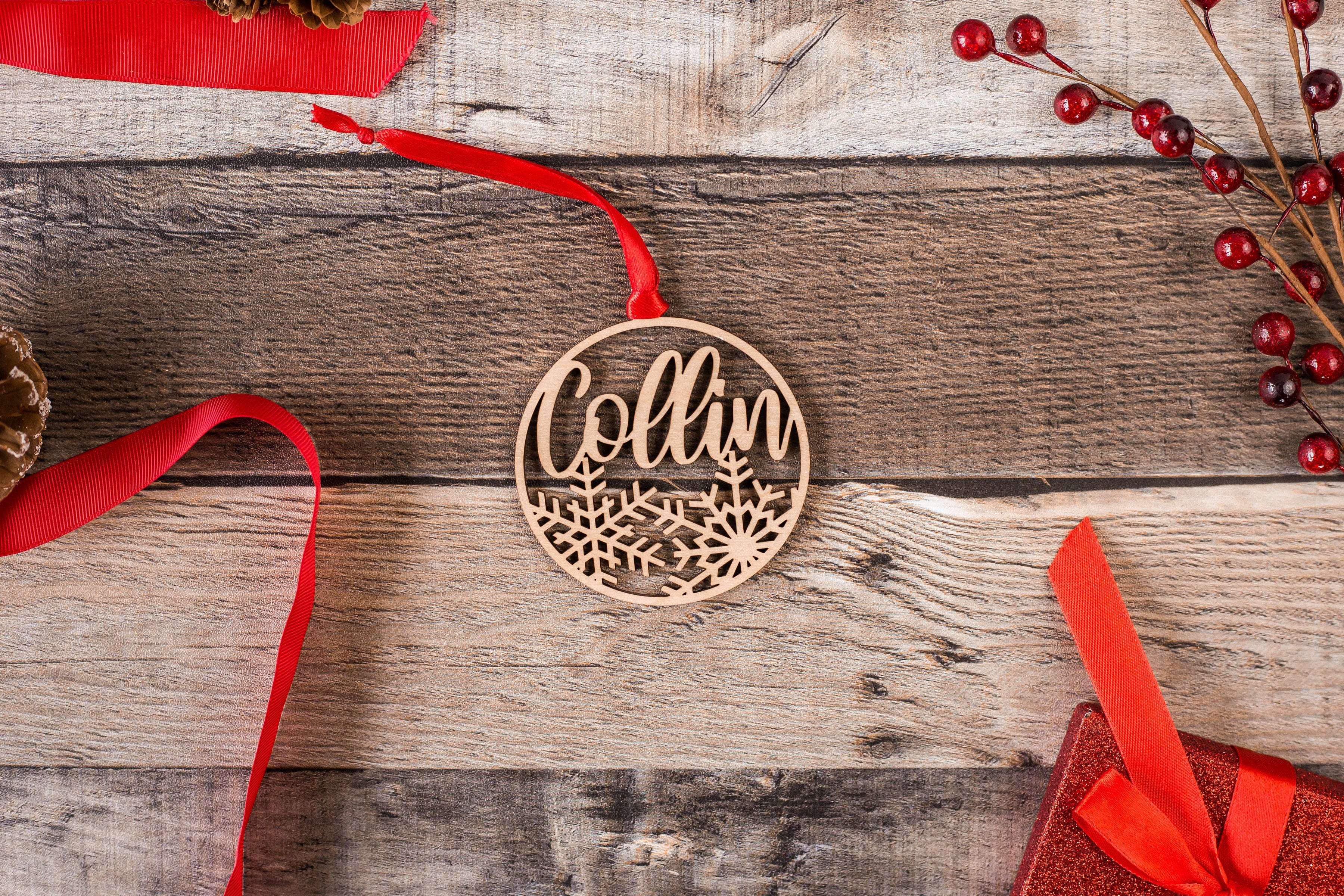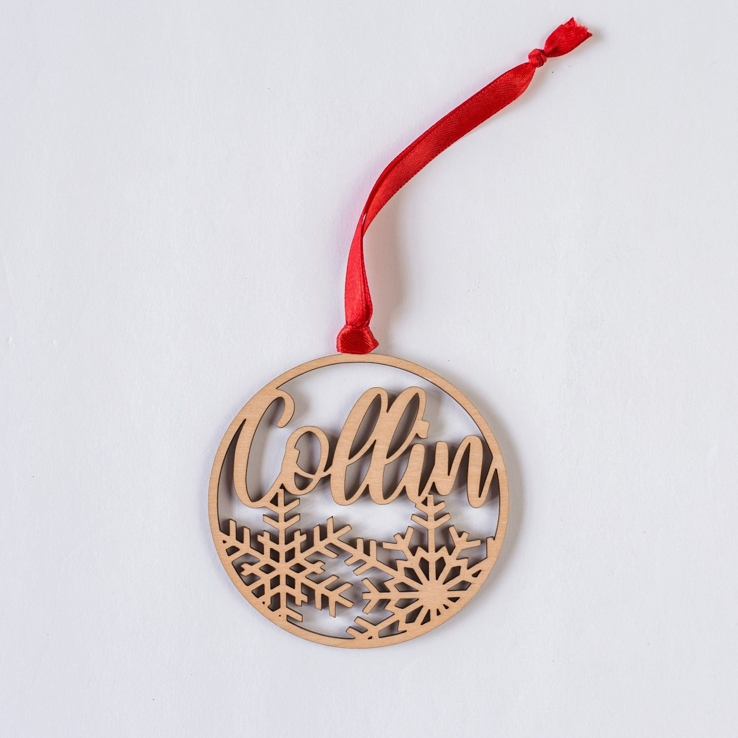 This elegant personalized wood ornament is a 3 inch round. It is cut from 3mm birch wood. Please leave your personalization up to 10 characters in appropriate field. If ordering multiple ornaments separate the names by a comma. For longer words please contact us to make sure it is something we can do.