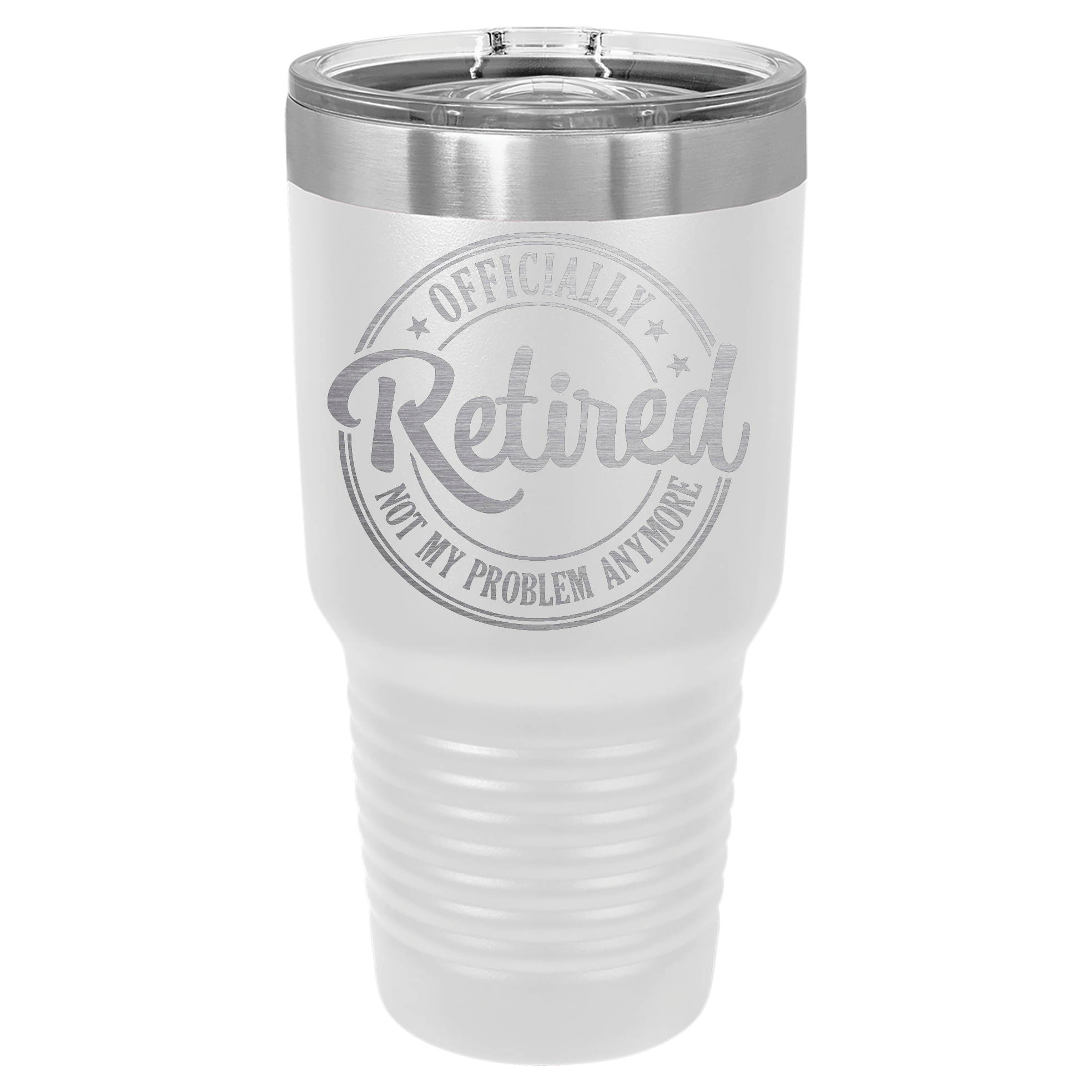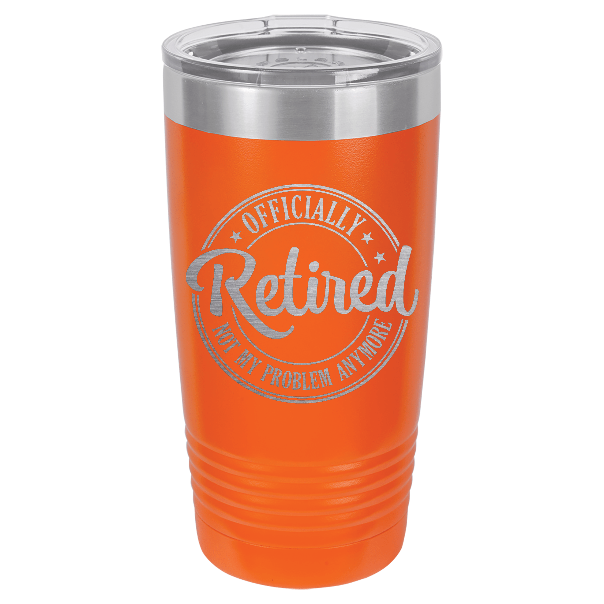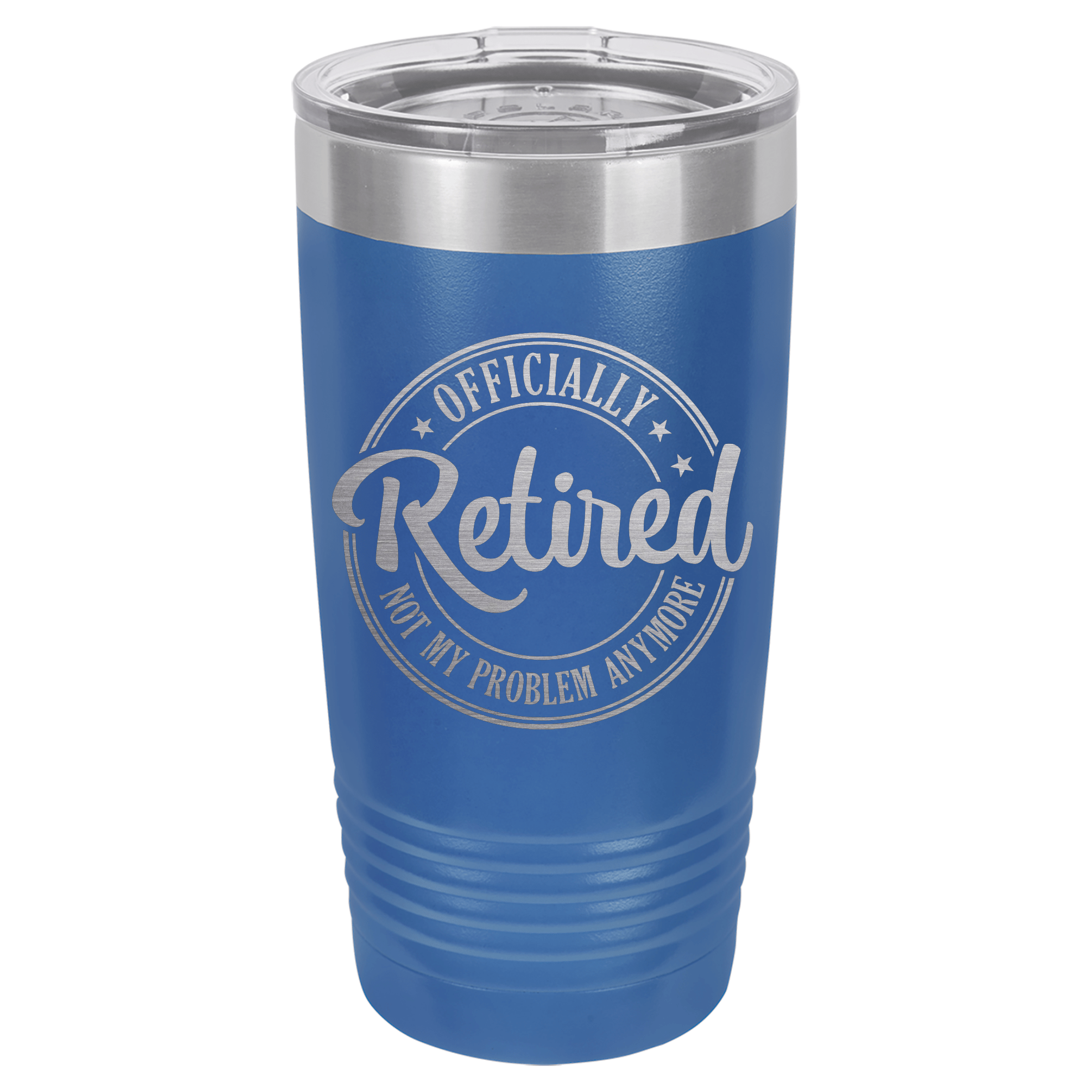 This Officially Retired Not My Problem Anymore tumbler is the perfect gift for your favorite retiree! Let your retired loved one show off their hard-earned title with this stylish engraved Polar Camel tumbler and finally say goodbye to a hectic lifestyle. Yes, finally!