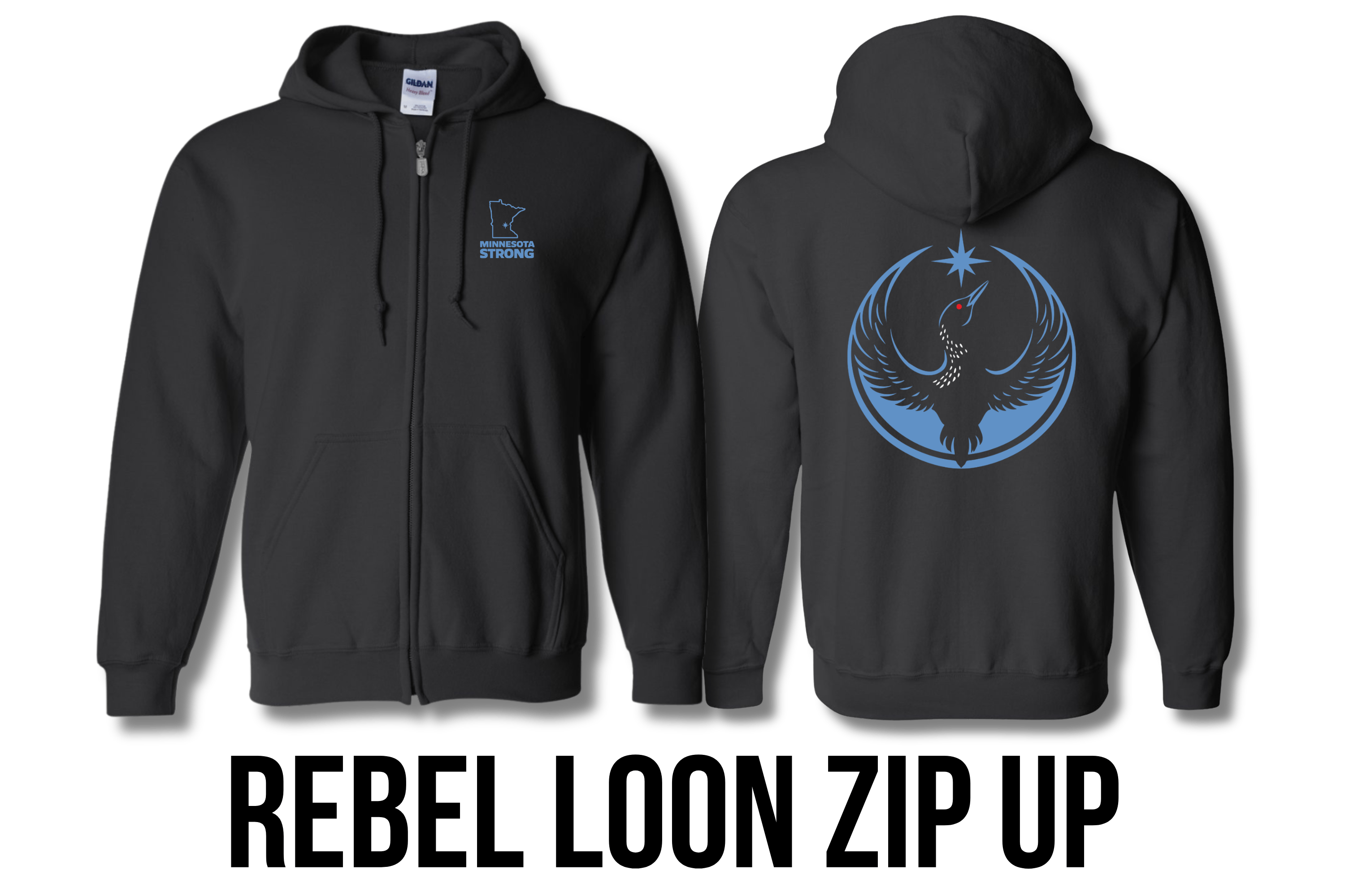 The Rebel Loon Zip-Up Hoodie is made for crisp mornings, late-night bonfires, and everyday “Minnesota Strong” community spirit. Built from a durable 50/50 cotton-poly blend in a classic fit, it’s comfortable now and ready for the long haul.