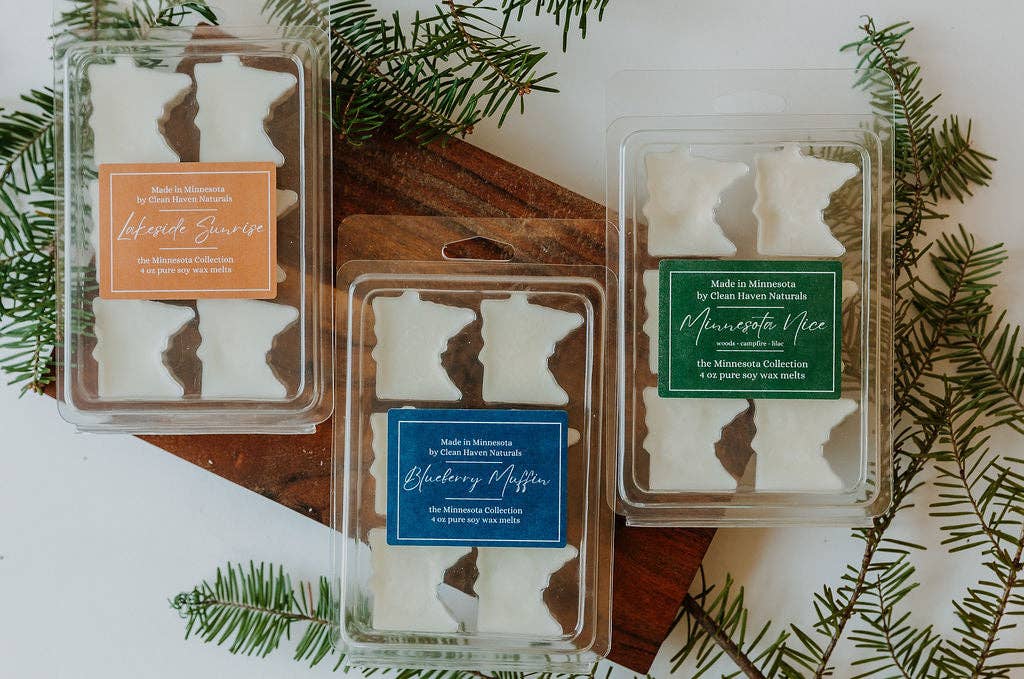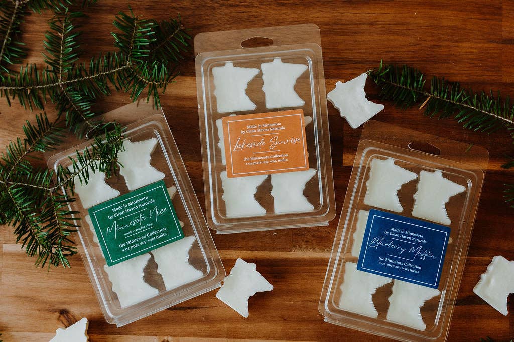 Our brand-new Minnesota-shaped wax melts are here and already a top seller at our Rush City, Minnesota store! Each clamshell contains 4 oz of pure soy wax, carefully crafted with long-lasting, perfectly balanced scents made from essential oils and phthalate-free fragrance blends.