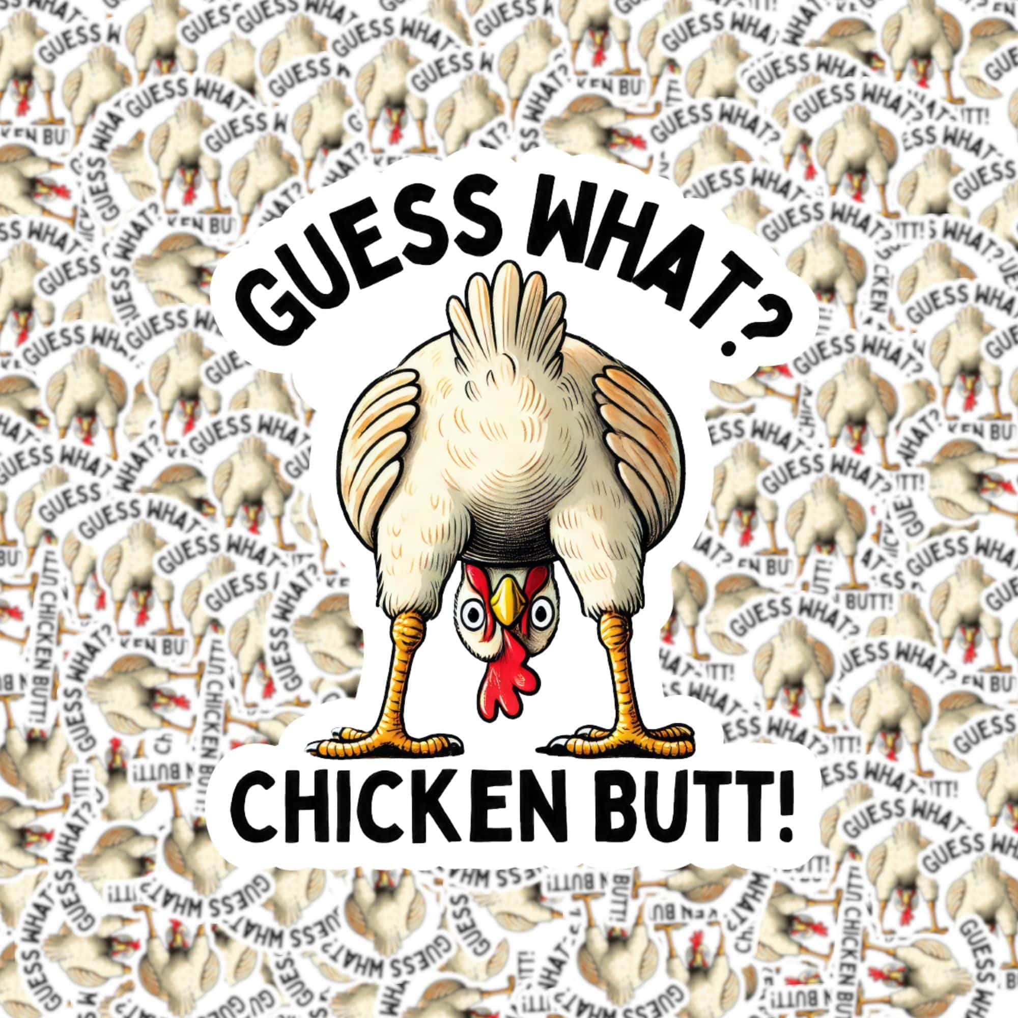 Stick it to 'em with our Guess What? Chicken Butt sticker! This funny kids sticker will have everyone laughing and adding a little humor to their day. Perfect for adding a playful touch to laptops, water bottles, and more!