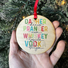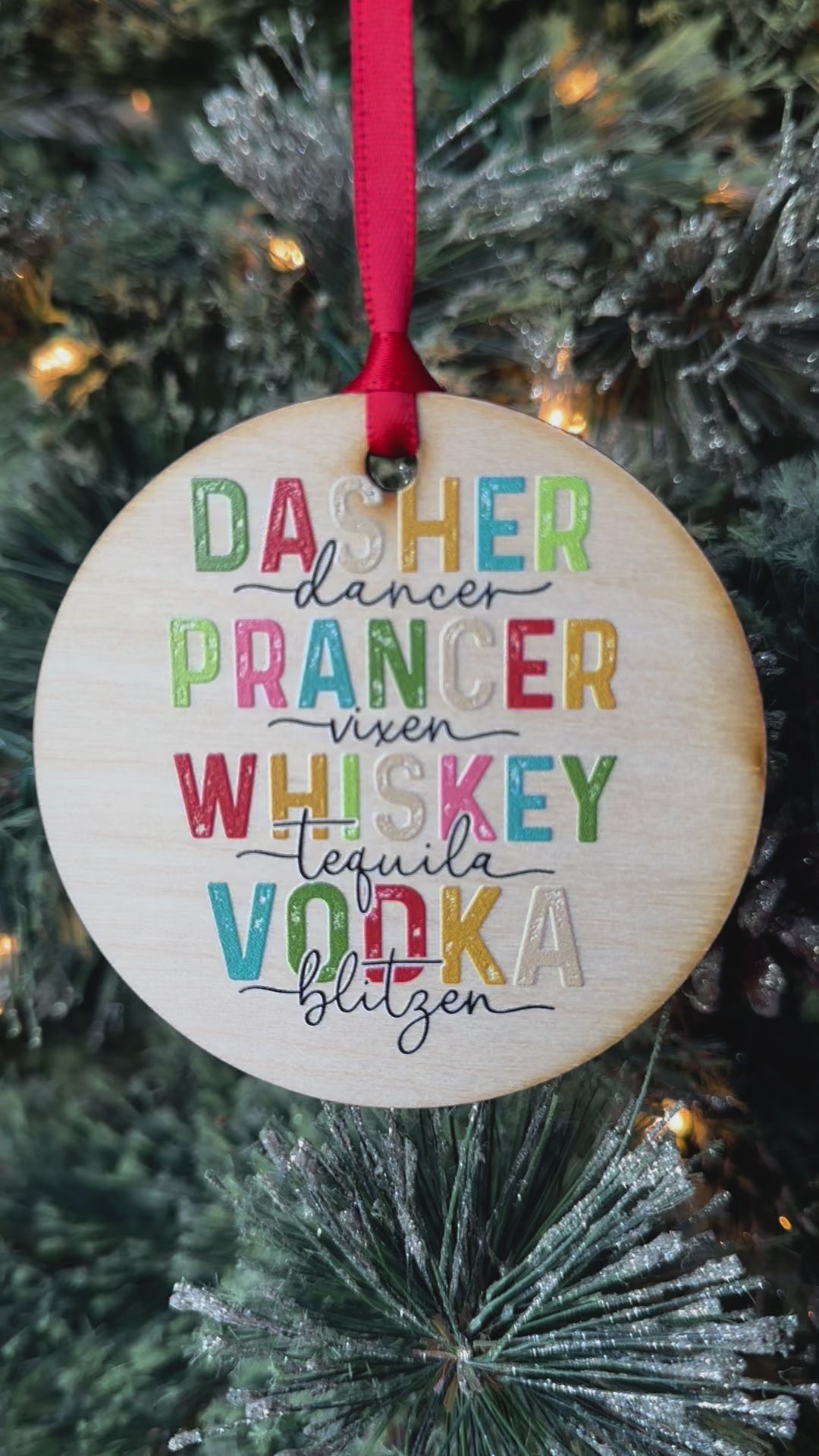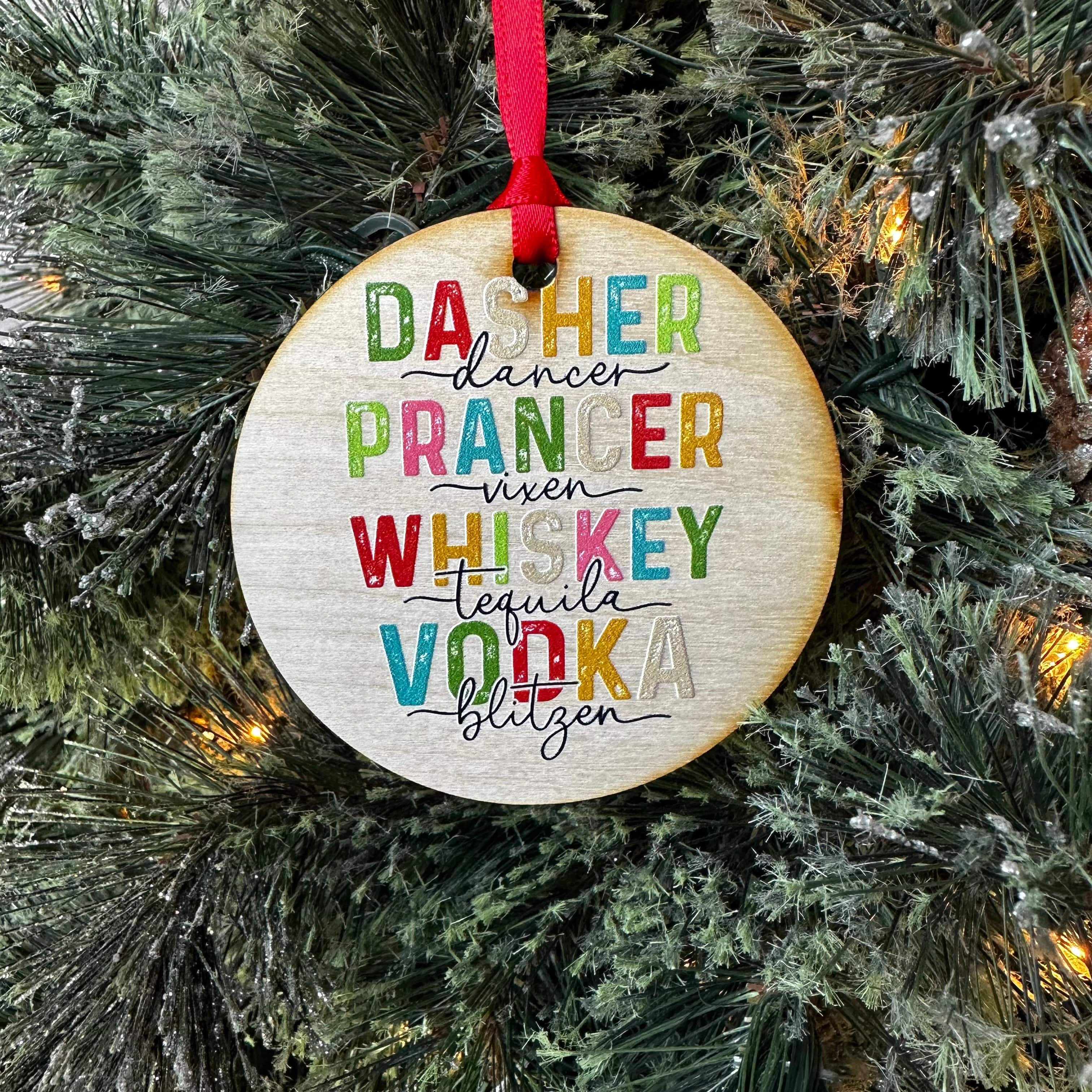 Dasher Dancer Prancer Vixen Whisky Tequila Wood Ornament