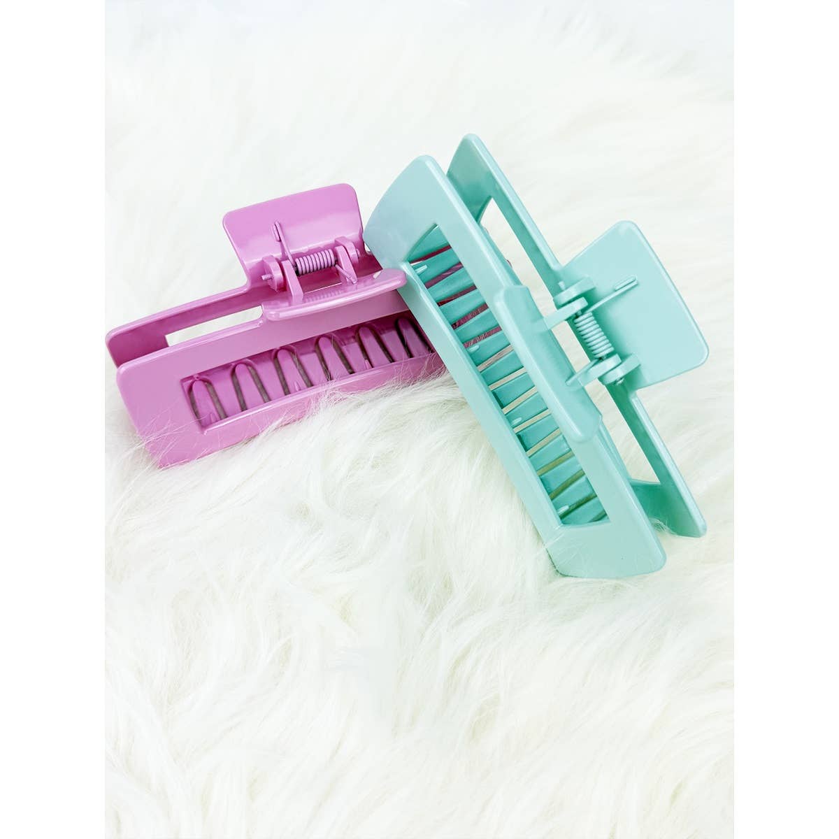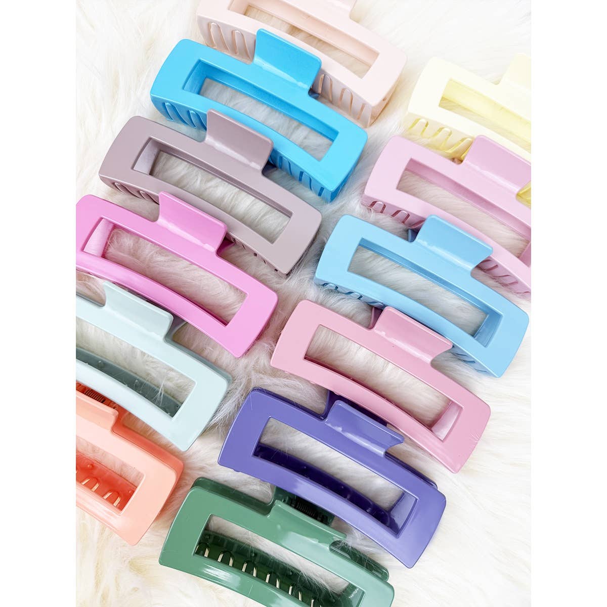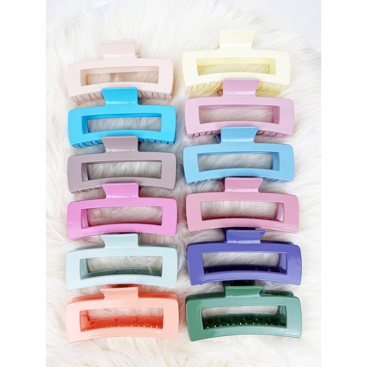 Glossy Jumbo Cut-Out Rectangle Hair Claw – Large 5" x 2.2" claw clip with a glossy finish that keeps hair secure without pulling. Non-slip design holds hair in place comfortably.