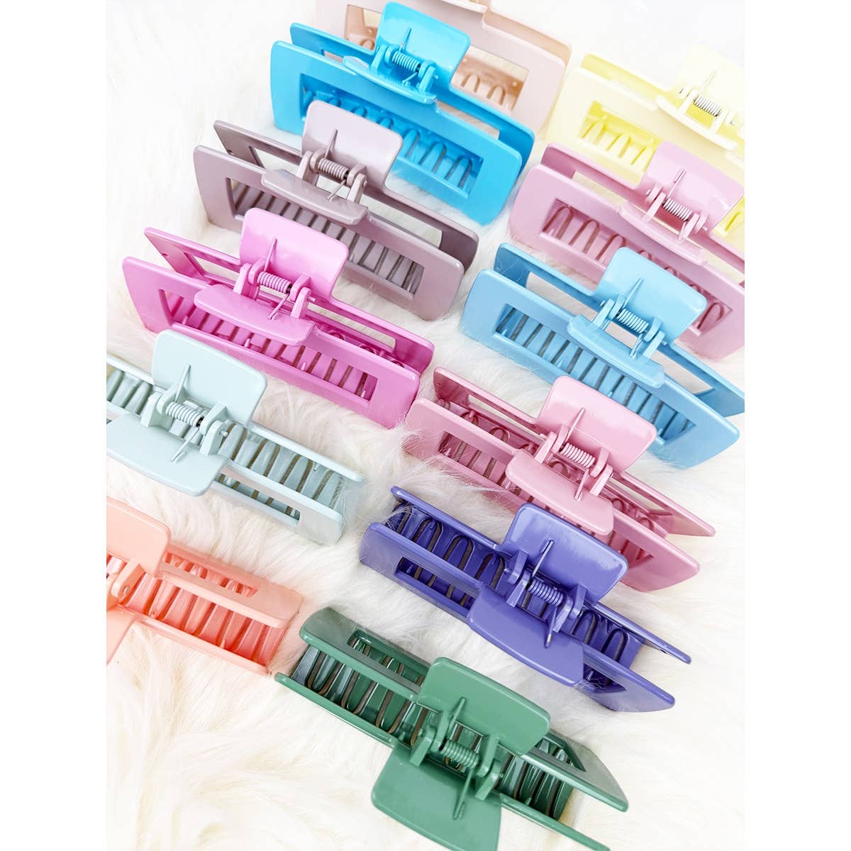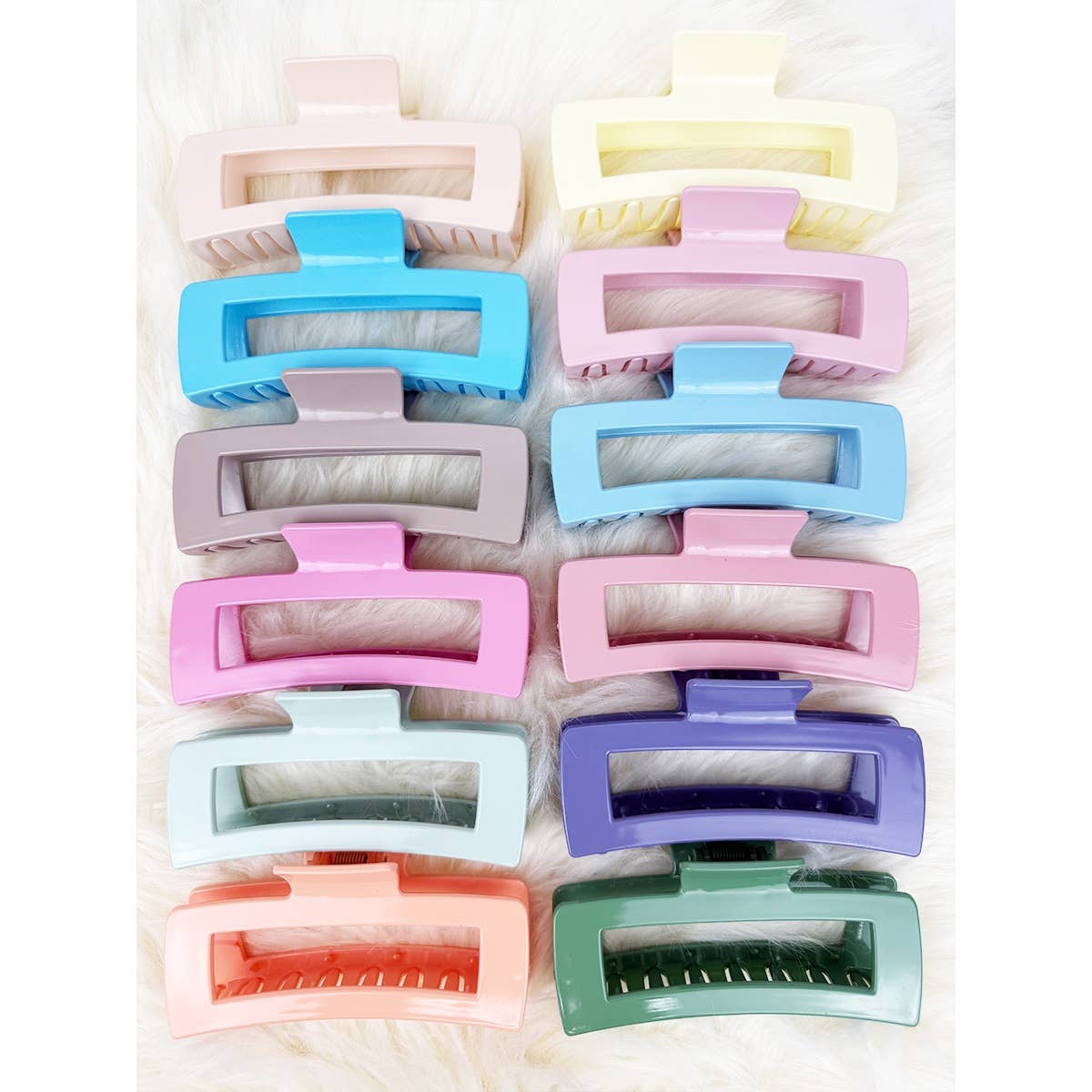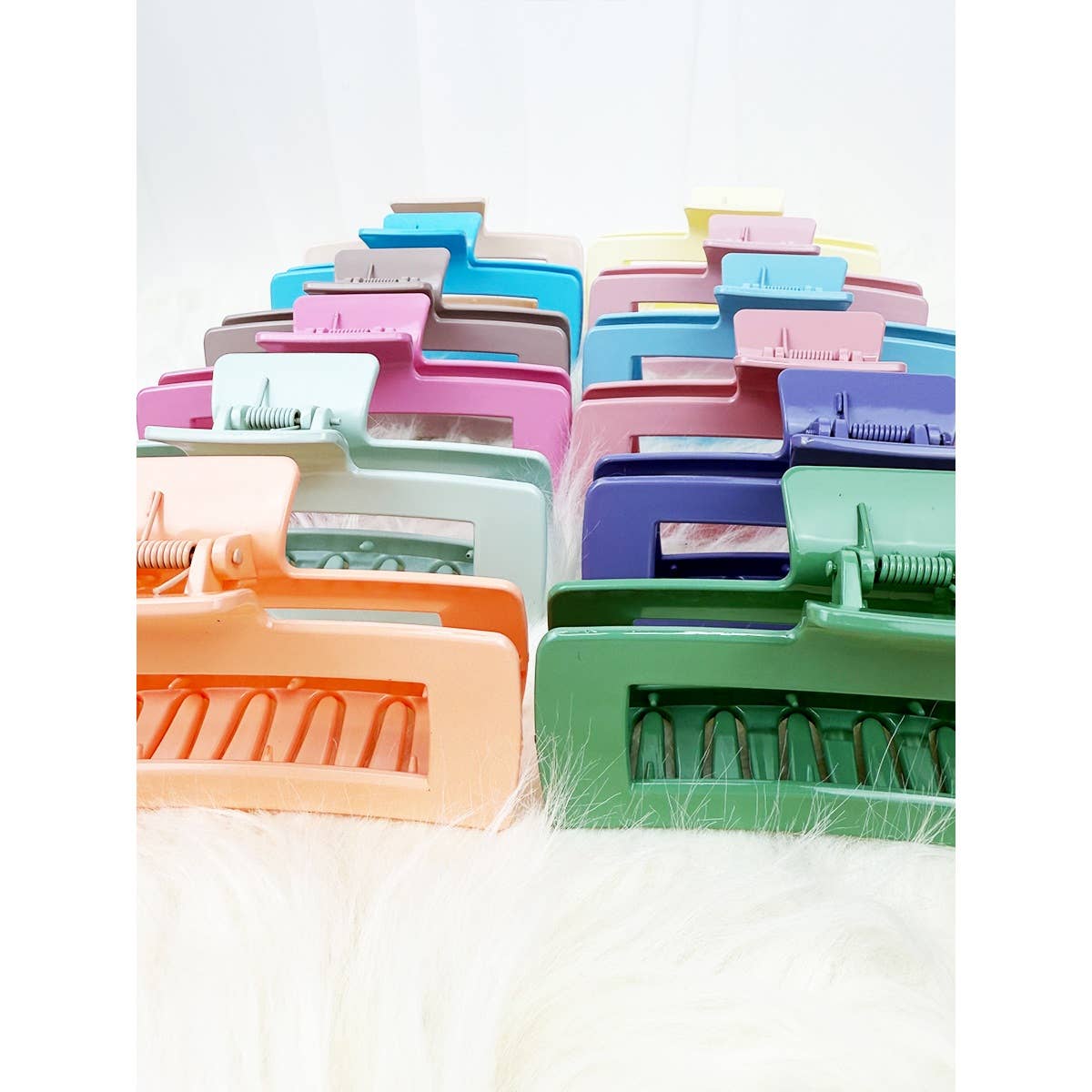 Glossy Jumbo Cut-Out Rectangle Hair Claw – Large 5" x 2.2" claw clip with a glossy finish that keeps hair secure without pulling. Non-slip design holds hair in place comfortably.
