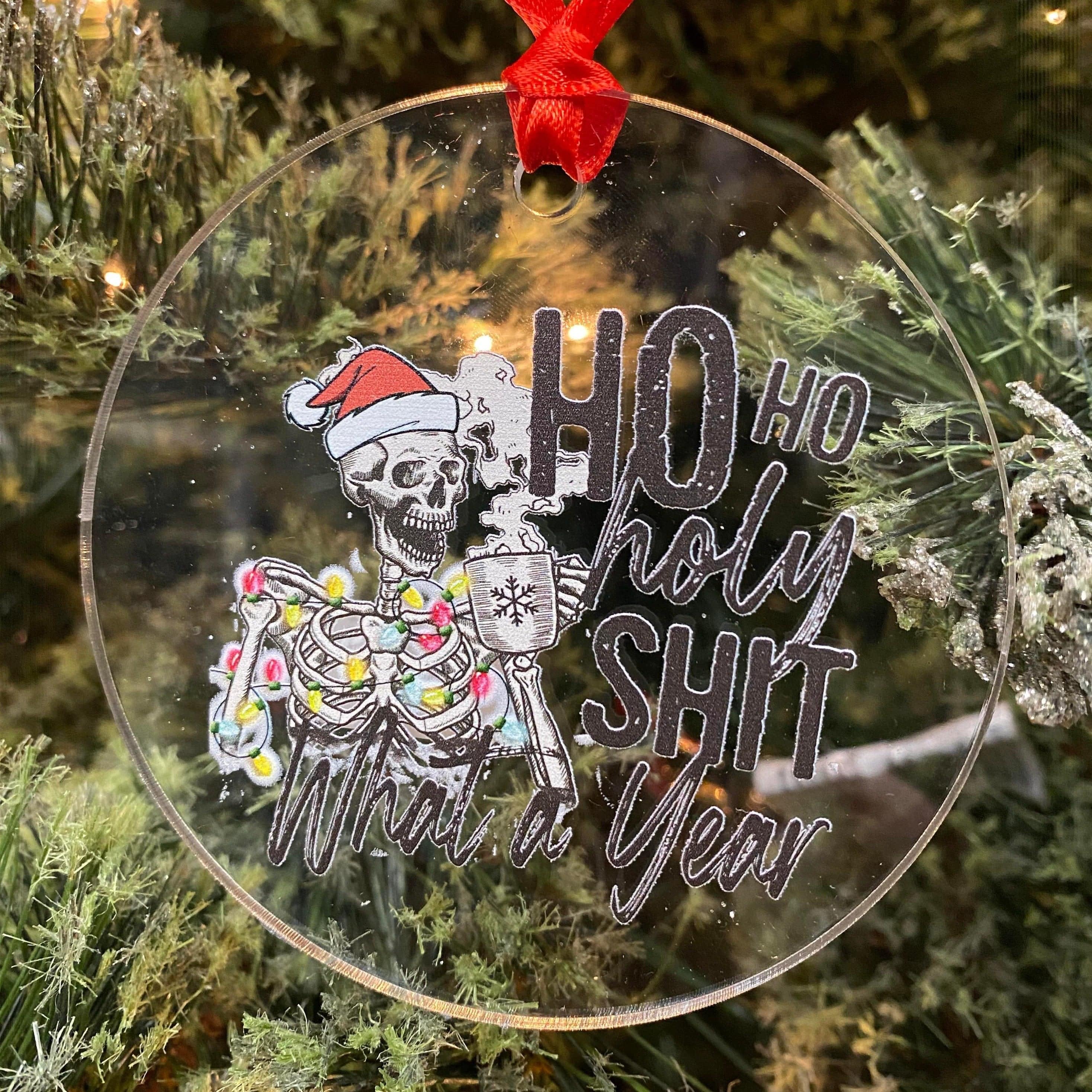 Ho Ho Holy Shit What a Year Acrylic Round Ornament