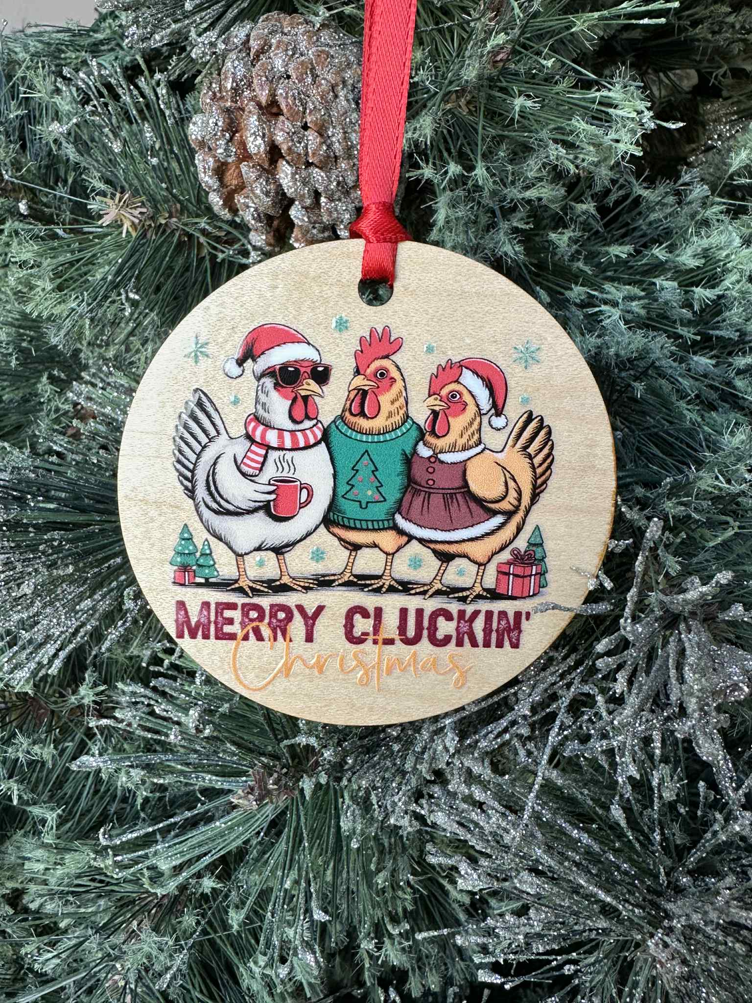 Celebrate the holidays with a touch of farmyard fun! The Merry Cluckin' Christmas Ornament brings festive cheer and a playful cluck to your tree. Perfect for chicken lovers, this charming ornament adds whimsy and joy to your holiday decor. Hang it up and let your Christmas shine with a little feathered flair!