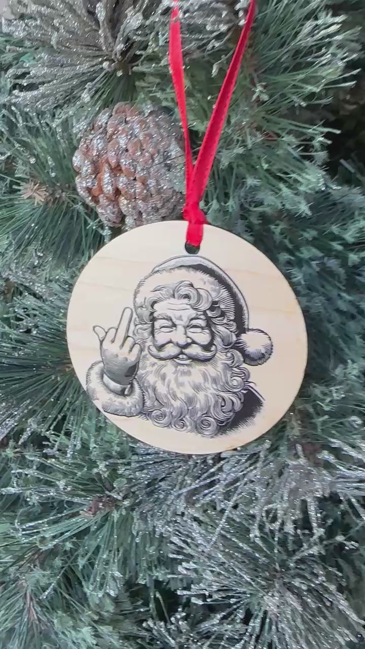 Bring some cheeky holiday spirit to your tree with the Middle Finger Santa Ornament. This playful decoration features a classic Santa showing a bold gesture, adding a humorous twist to your festive decor. Perfect for those who like their Christmas with a bit of attitude and a lot of laughs.