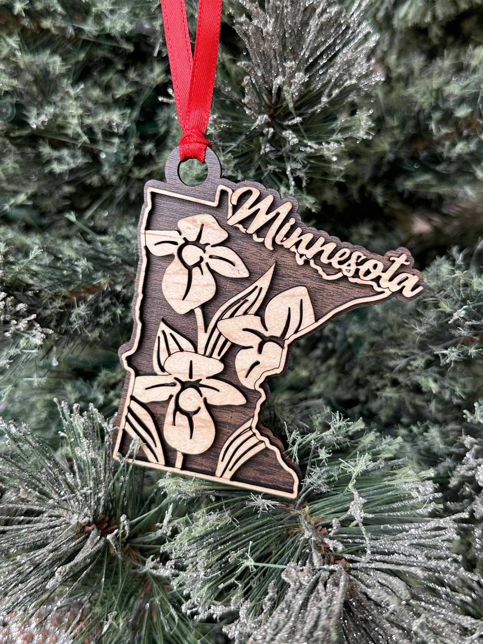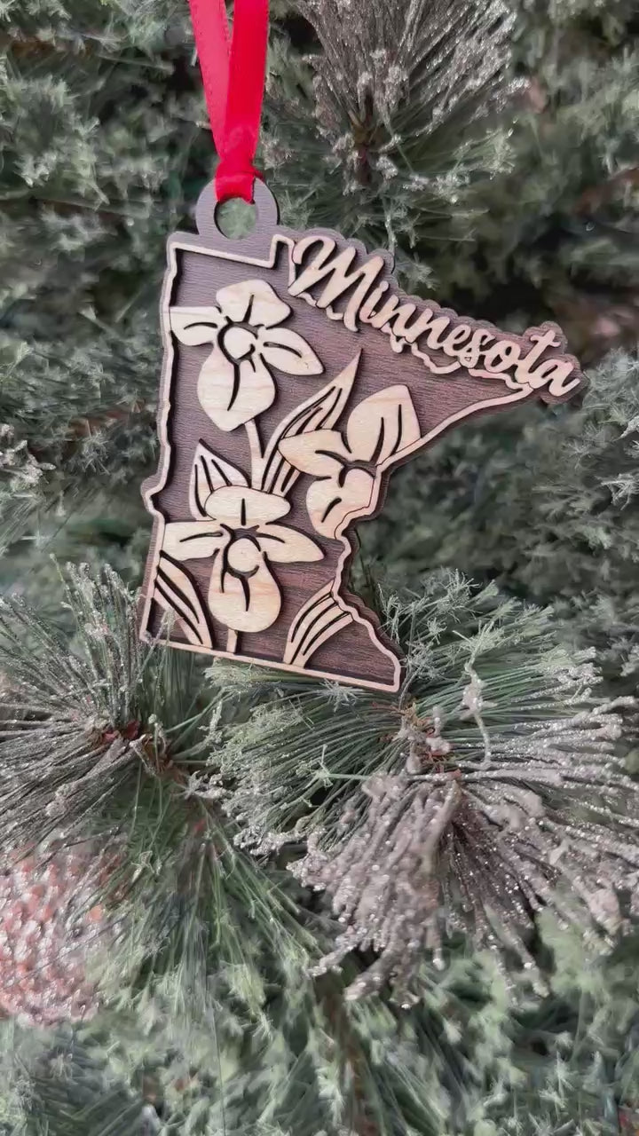 Enhance your home decor with our exquisite Minnesota Flower Ornament. Crafted with two layers of wood and featuring two stunning tones, this beautiful ornament beautifully captures the essence of Minnesota flowers. Add a touch of sophistication and elegance to your space with this exclusive piece.