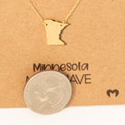 This necklace introduces a stunning Minnesota state pendant necklace style. Discover the perfect balance of subtlety and flair as this trending necklace effortlessly completes your look.