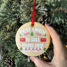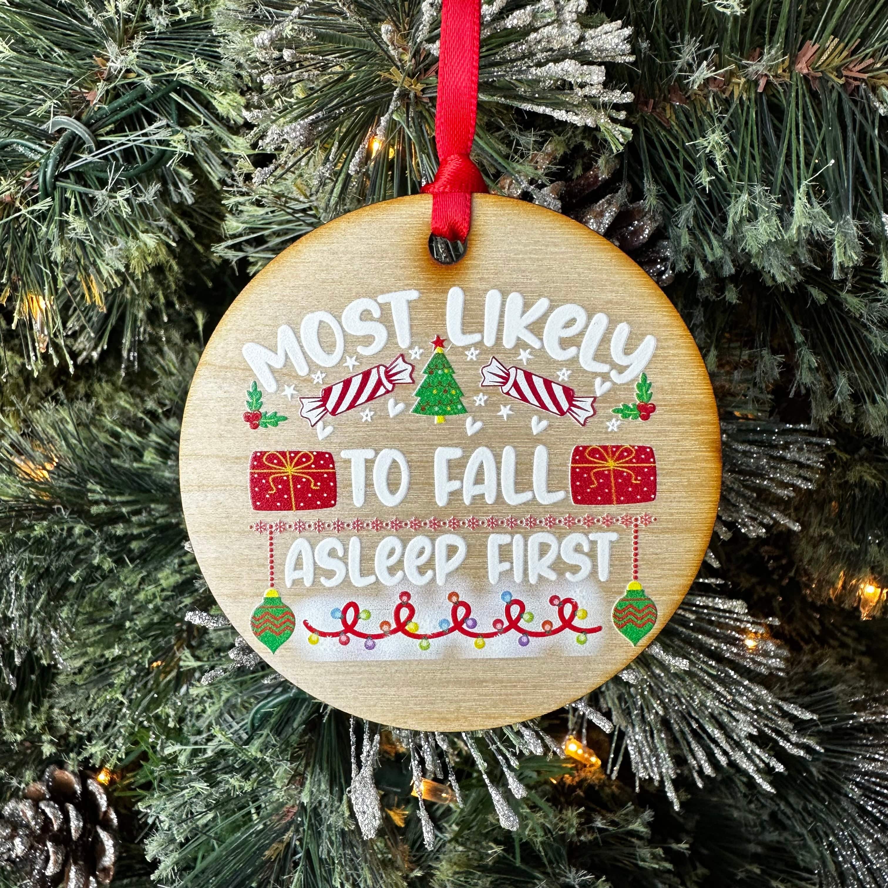 Give the gift of a good laugh with our "Most Likely to Fall Asleep First" wood ornament. The perfect present for a sleepy coworker or friend, this quirky ornament is sure to bring a smile to their face. Add a bit of humor to this holiday season with this unique gift.