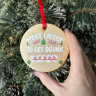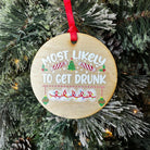 Add some holiday cheer to your gift giving with our Most Likely to Get Drunk Wood Ornament! This funny ornament is the perfect present for your best drinking buddy or co-worker. Get ready for laughs and a good time with this unique and quirky gift. Cheers!