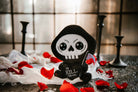 Nothing says “till death do us part” like our Grim Reaper plushie! This anti-hero is a unique way to tell anyone you’re dying to make them happy and maybe, just possibly, kill for them. His sparkling eyes, bloody scythe, and embroidered details make this plushie GRAVEly irresistible. Bereave us, he’d make a wonderful gift for your soulmate, especially during Valentine’s Day!
