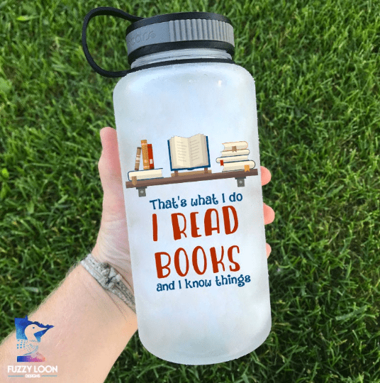 I Read and I Know Things. A perfect water bottle for every lover of books.