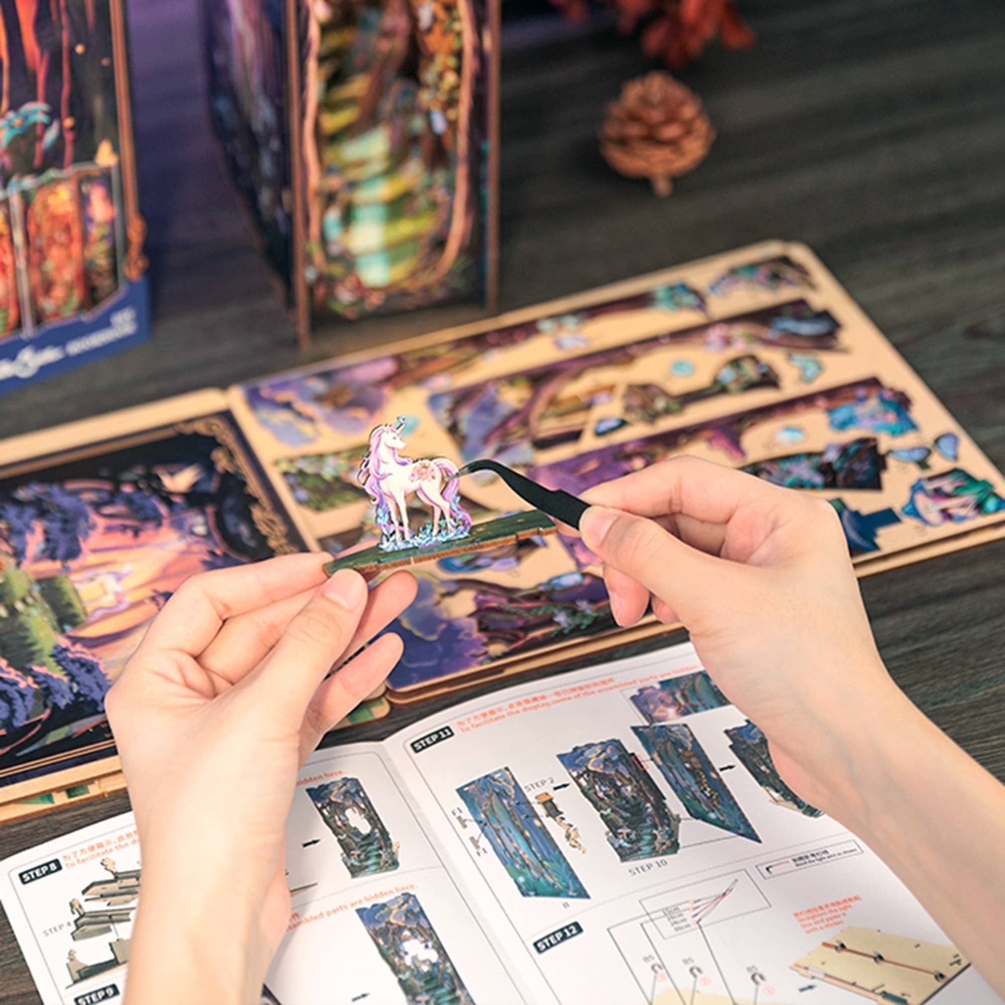 DIY Book Nook Kit : Unicorn - Enchanting Miniature LED Display (89 Pieces)