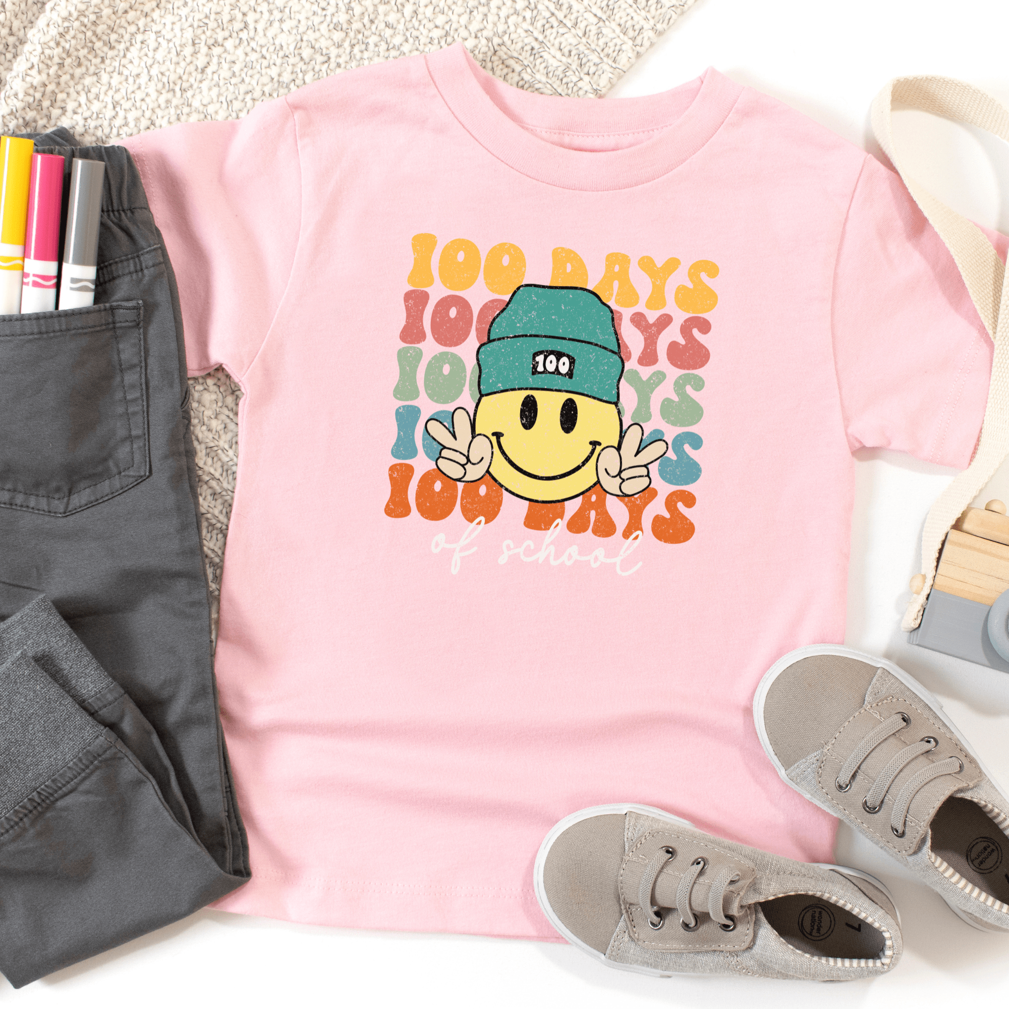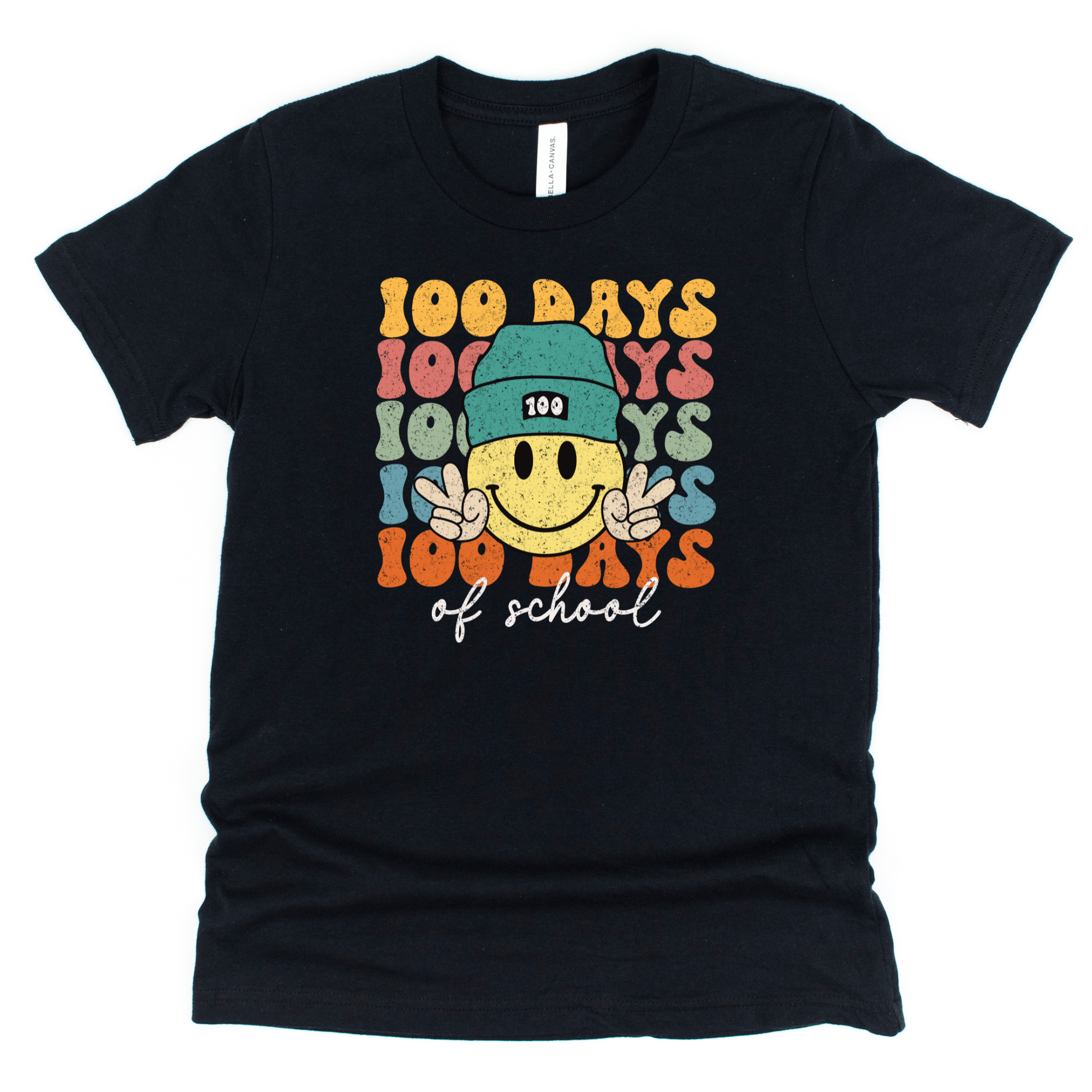 Happy 100 Days of School! This retro smiley tee is sure to make everyone smile.