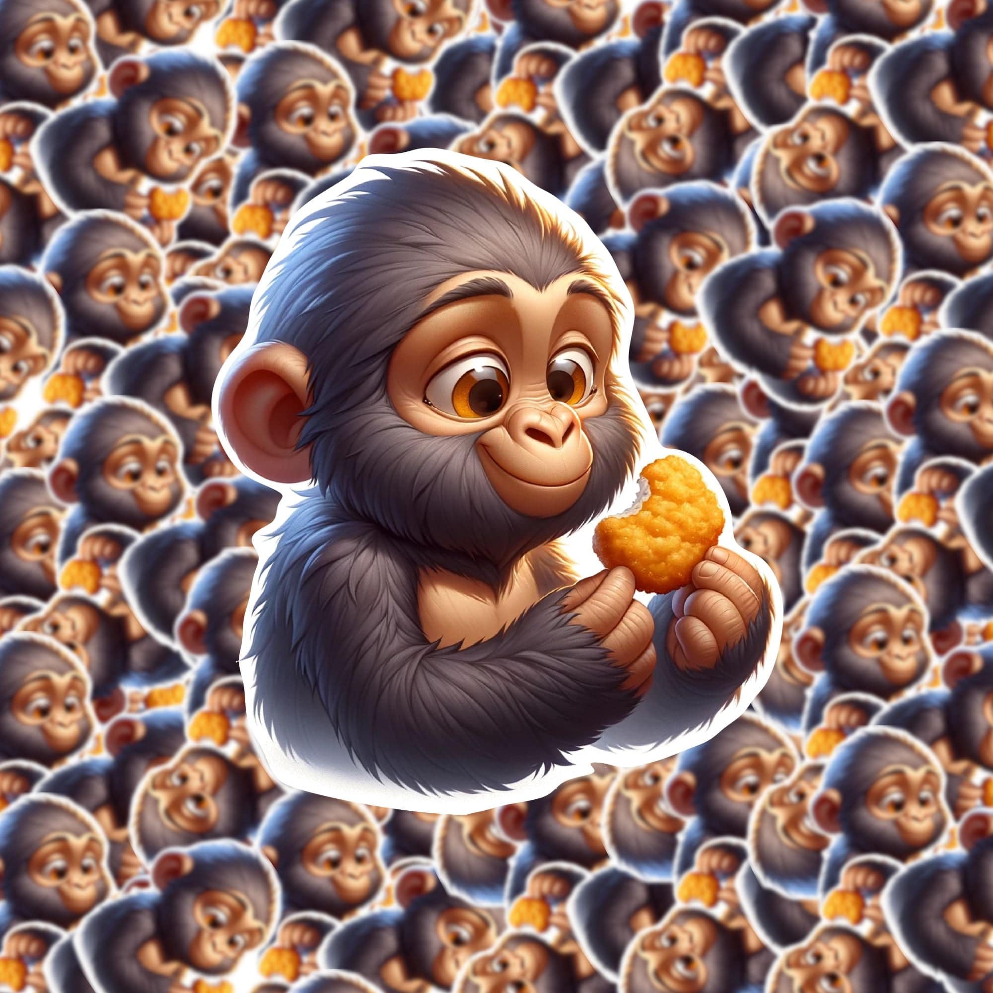 Baby Gorilla Eating a Chicken Nugget Sticker