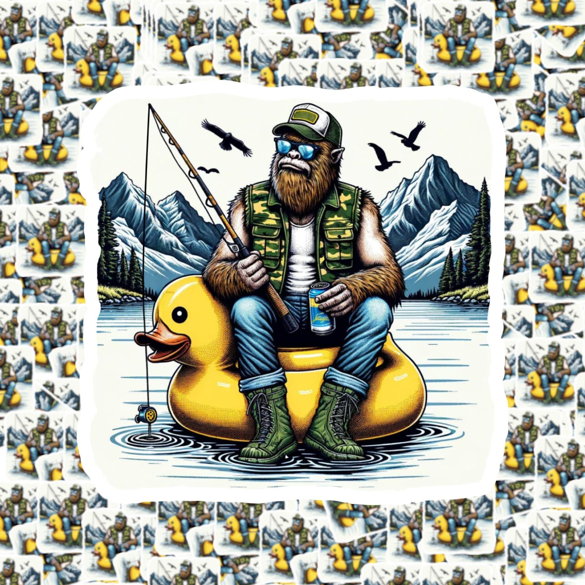 Catch a glimpse of the ever-elusive Bigfoot fishing, without leaving the comfort of your own home! This quirky sticker features Big Foot sitting in a duckie float, adding a touch of humor to your gear. A must-have for any fishing enthusiast looking to stand out on the water.