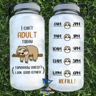 "I Can't Adult Today. Tomorrow Isn't Looking Good Either" Printed with a cute sloth on one of our motivational water bottles.