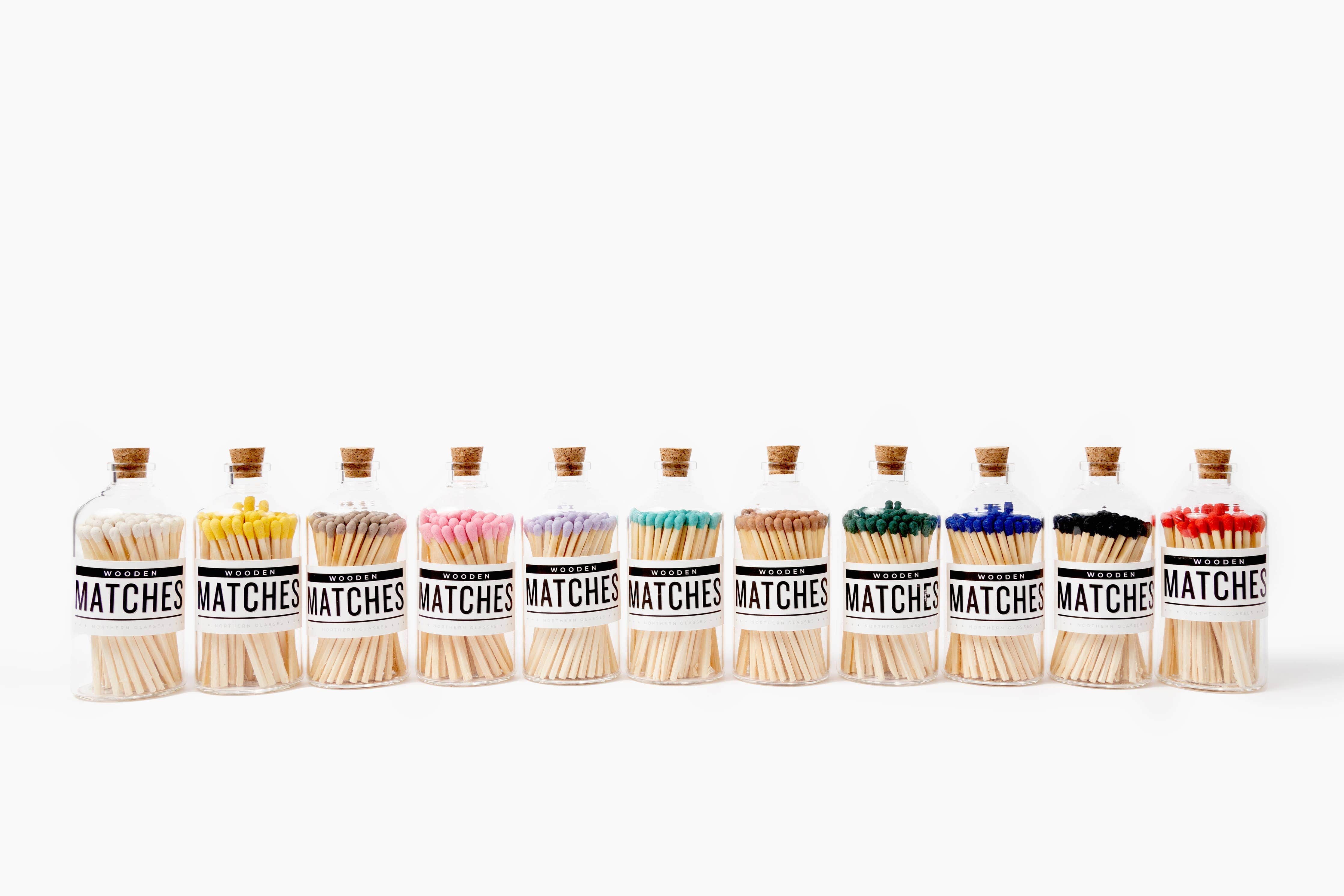 About 50 matches per jar. Available in 11 different colors. Match length is 3 inches.