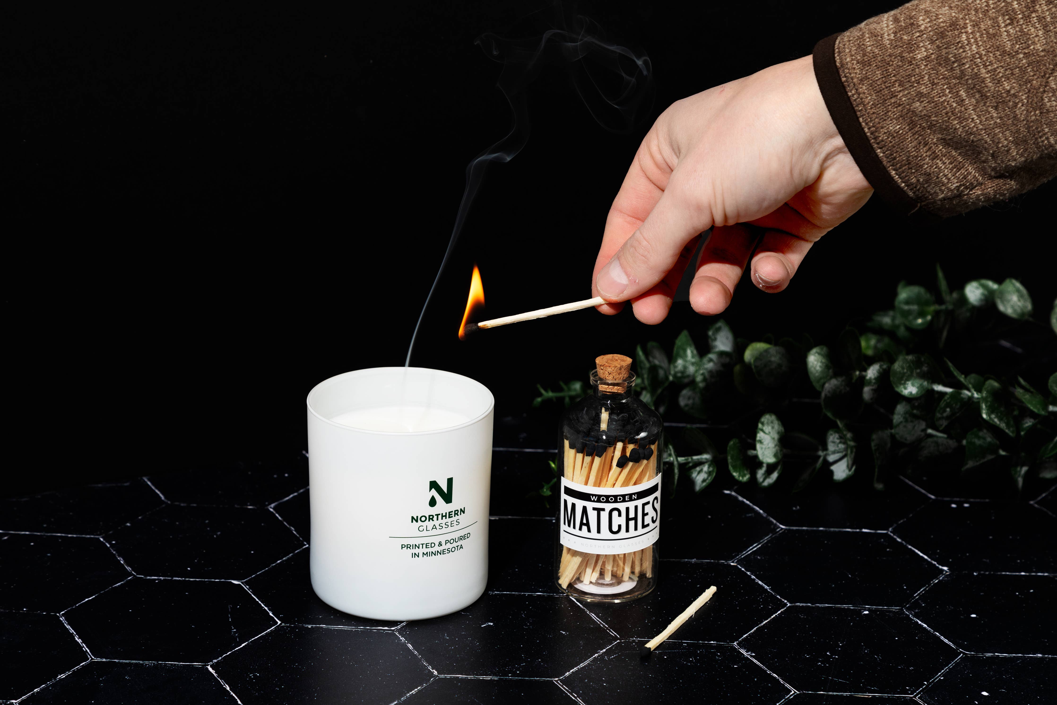 Who says you have to choose between form and function? Our matches come in a stylish glass jar with a cork top that looks nice in any living room or setting. The striker on the bottom of the vessel also makes it the perfect match carrier for travel purposes.