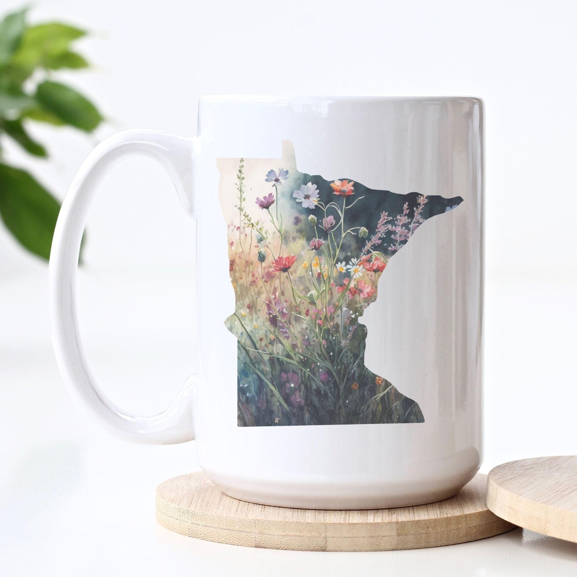 Bring a piece of Minnesota nature into your home with our Floral Minnesota Mug. The unique shape and beautiful wildflower design make this 15oz ceramic mug a charming addition to your morning routine.