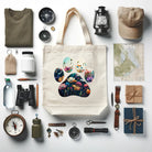 Our NEW canvas totes are made of 10oz recycled canvas material, roughly 15"x16" with a flat bottom. Reinforced at stress points. Because totes are made with recycled material and of fabric texture, color may differ slightly.