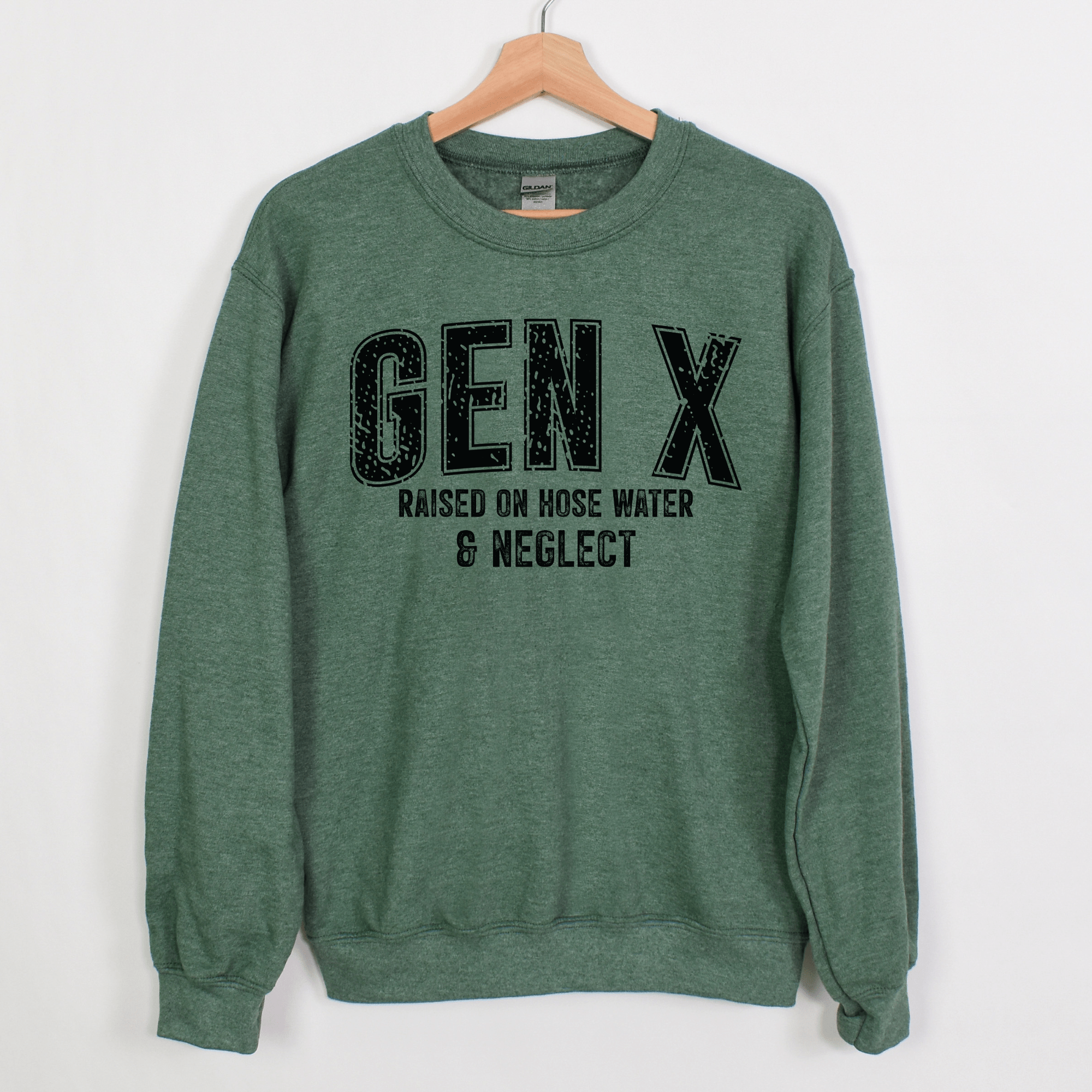 Introducing the Gen X Comfy Crew Sweatshirt. Made for those who were "Raised on Hose Water & Neglect", this sweatshirt lets you show off your unique sense of humor and relive your childhood memories. Stay cozy and cool with this quirky addition to your wardrobe.
