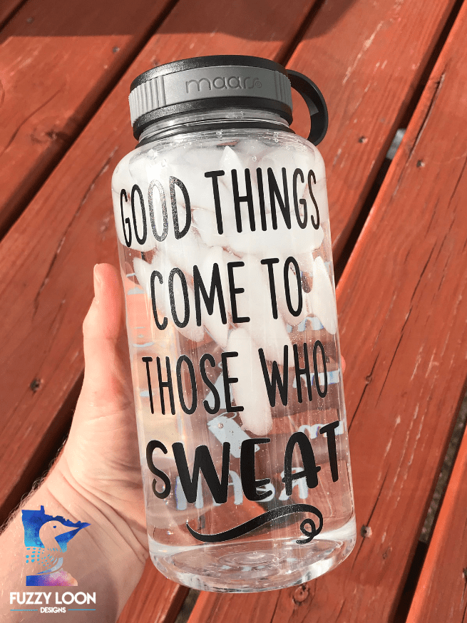 This motivational bottle reminds us "Good Things Come To Those Who Sweat"