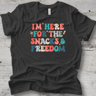 It's the 4th of July and you're ready to show your patriotism and your appetite in one bold statement - this Here for the Snacks and Freedom adult t-shirt! With a playful, cheeky design, you can let everyone know how seriously you take your freedom and your snacks. Celebrate in style!