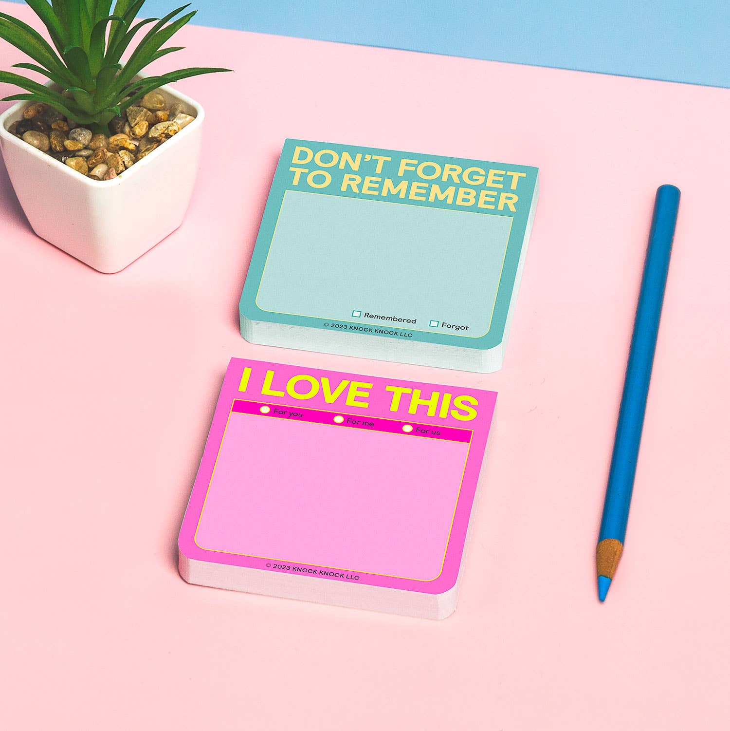 Use these colorful sticky notes to say “I love this,” write love notes, or simply jot your to-do list notes! Knock Knock sticky pads are down for whatever.