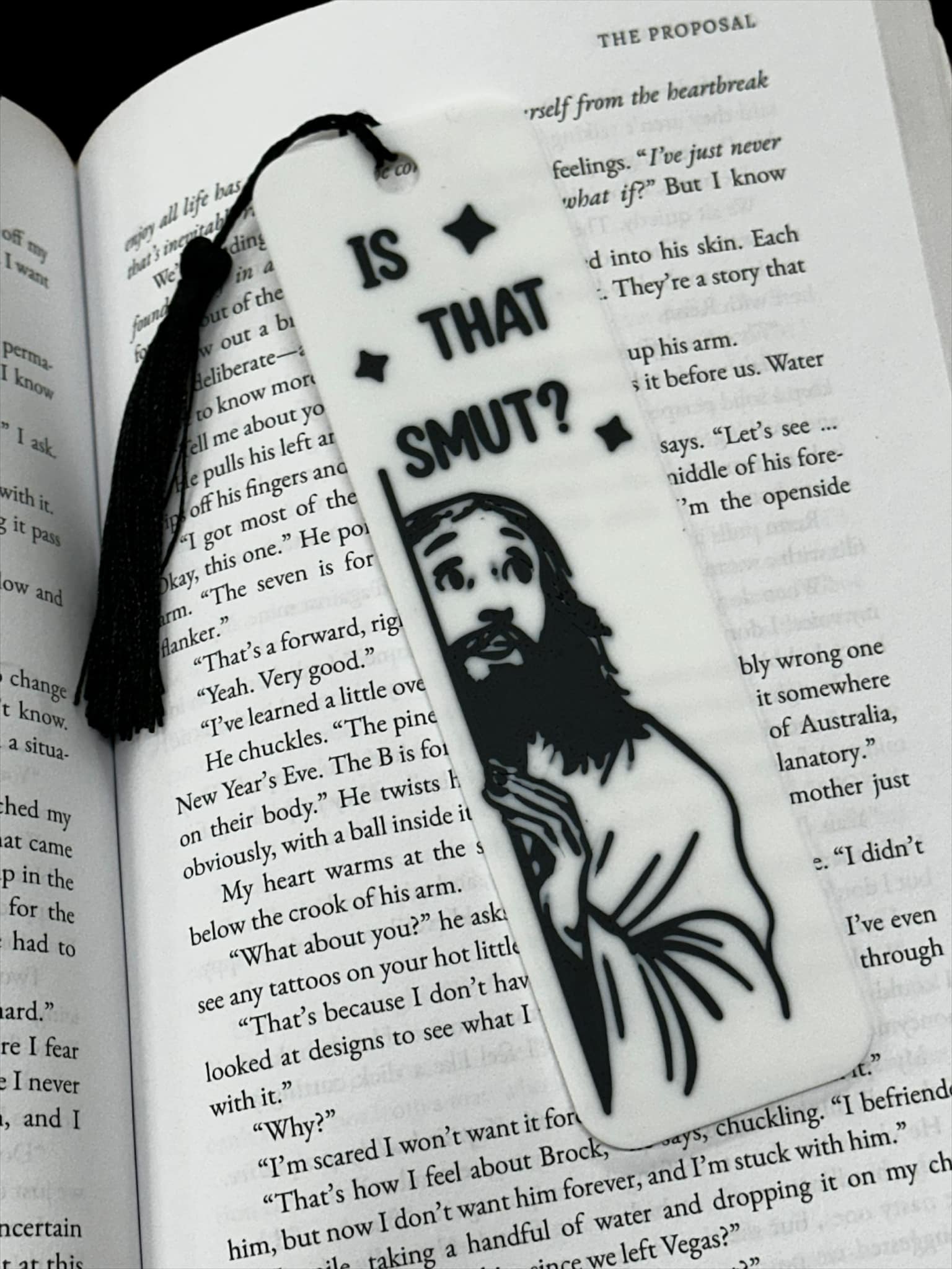 Add some character to your reading experience with our Is that Smut? Bookmark. Featuring a 3D printed design, this bookmark is both fun and functional. Let Jesus peek around the corner and ask the question on everyone's mind: Is that smut? Never lose your page again with this quirky bookmark.
