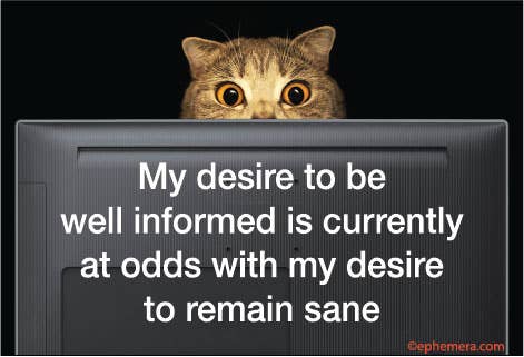 Introducing Ephemera’s “My Desire to Be Well Informed Is Currently At Odds with my Desire to Remain Sane” magnet. This rectangular novelty is brutally honest, sarcastic, and perfect for letting your fridge, locker, or workspace do the talking.