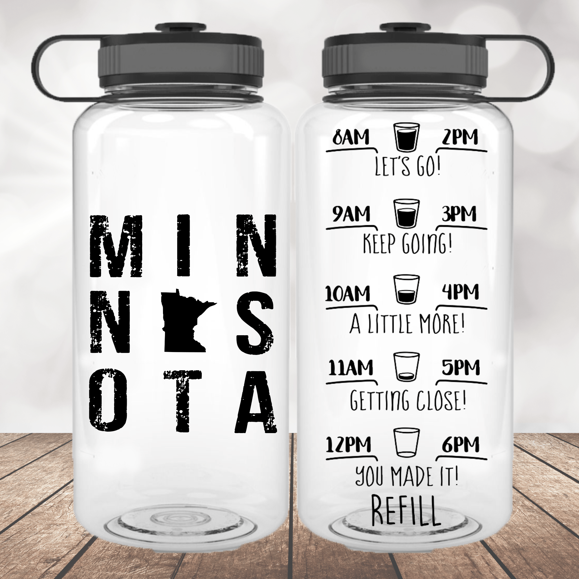 The bottle is a 34oz single wall Eastman Tritan™ water/sport bottle. Tritan is a tough, shatter-resistant, 100% BPA free copolyester that can withstand sub-freezing and boiling temperatures. The black plastic twist-on cap is attached to the bottle via a tethered strap.