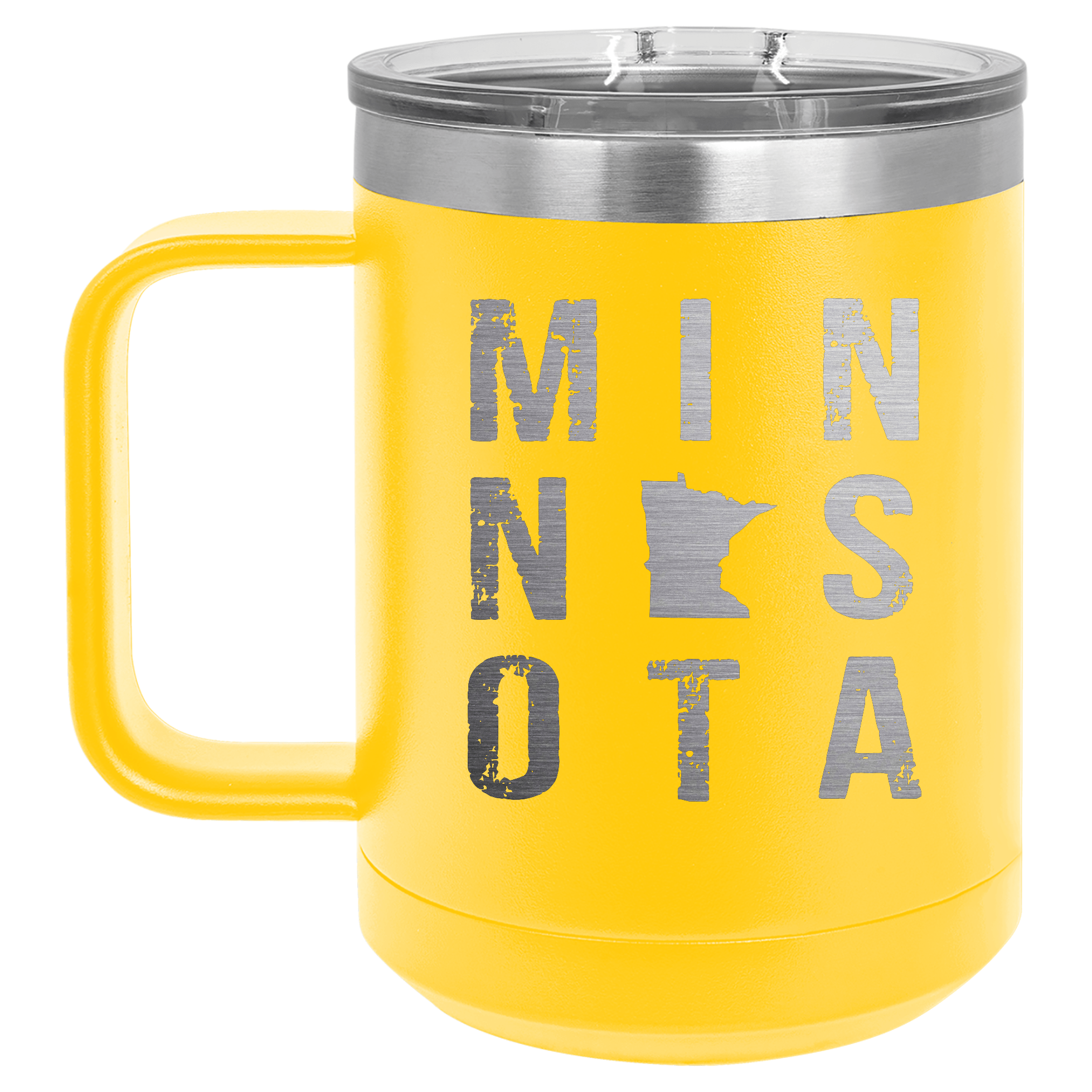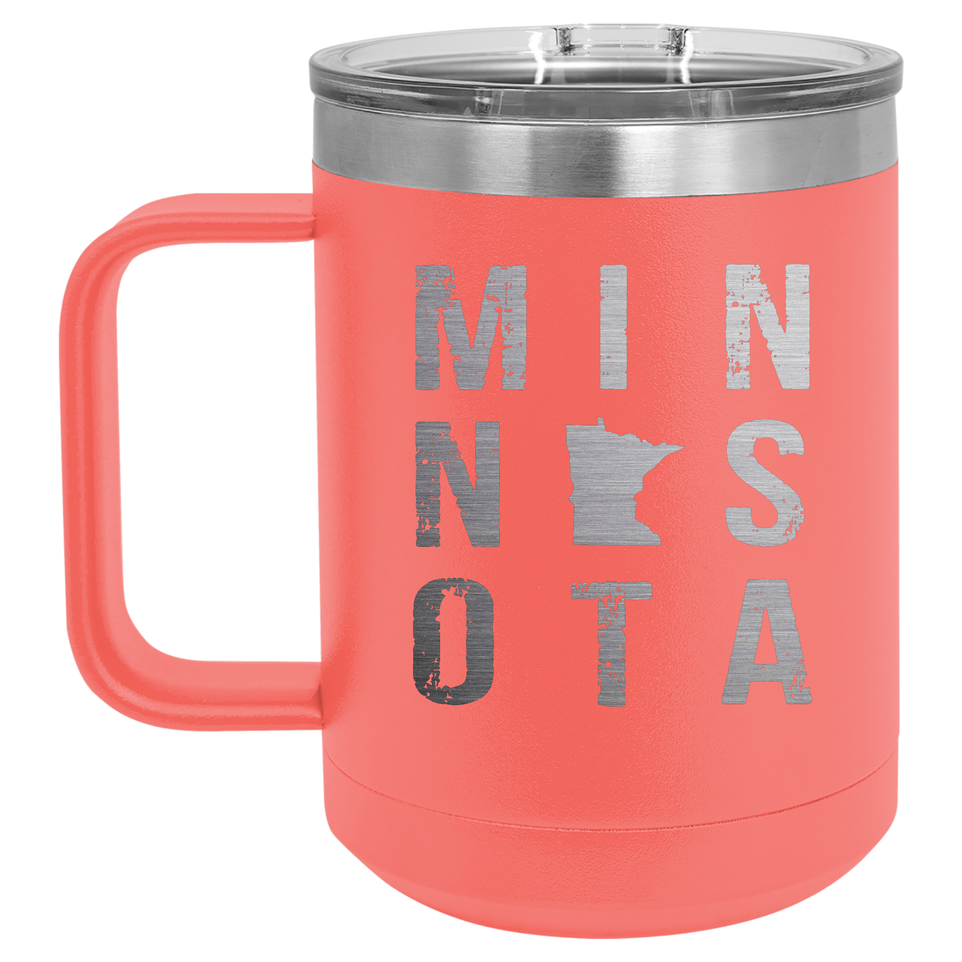 Show off your Minnesota roots with this stylish 15oz insulated mug! Keep your drinks hot or cold with a double-walled mug with a slider lid. An engraved Minnesota logo displays your state pride no matter where you are. Be proud and stay refreshed!