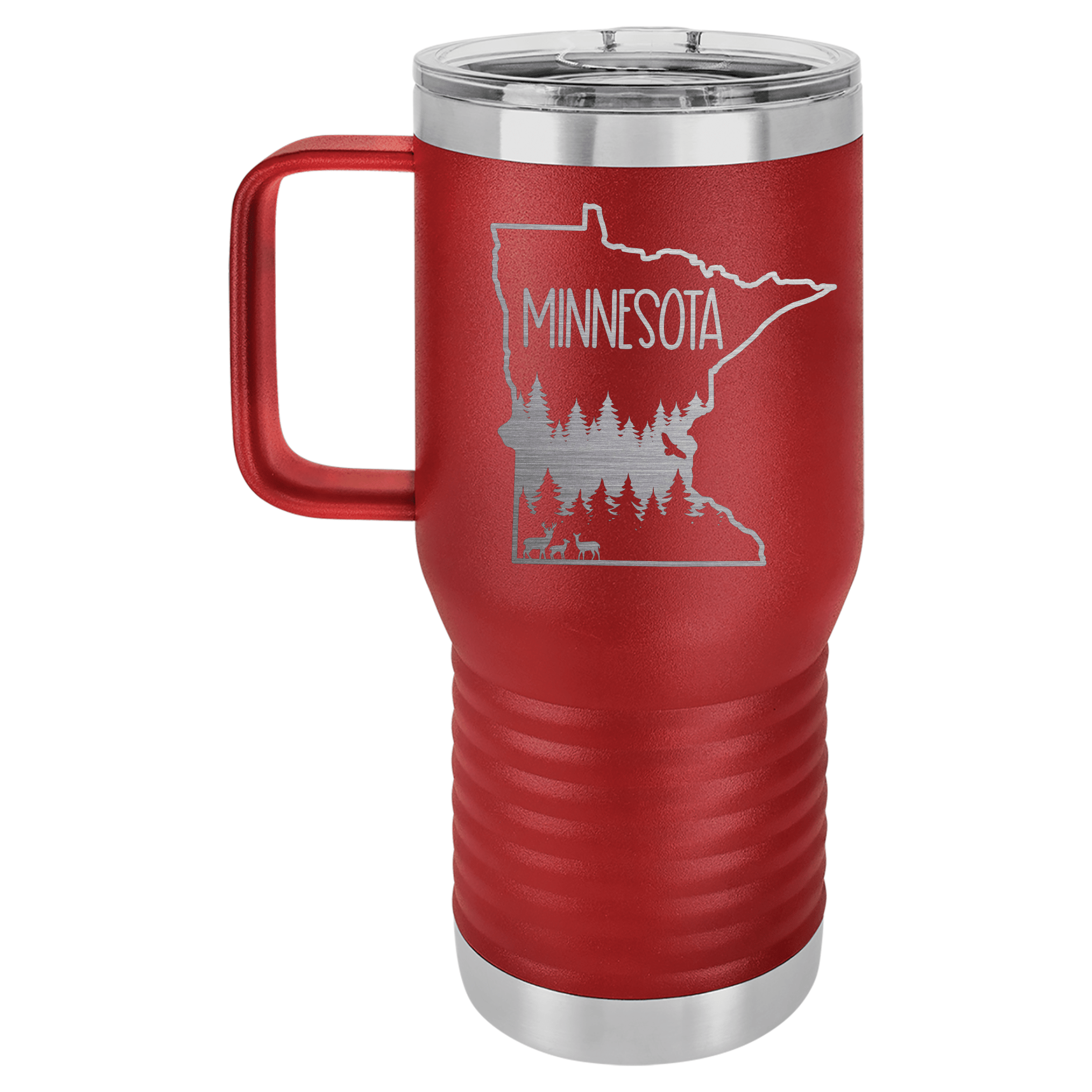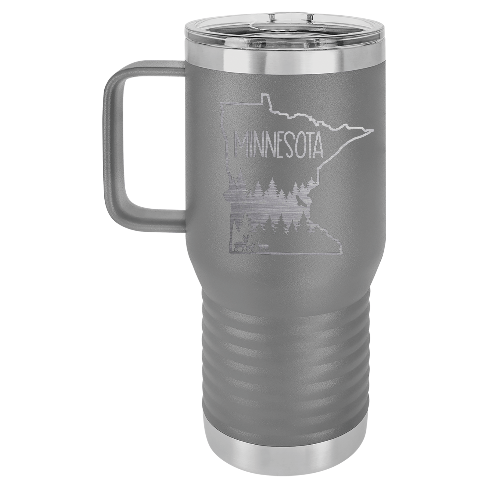 These 20oz travel tumblers will fit in your cup holders in the car, and they are just like the tumblers you know and love already, but with a HANDLE! Perfect for any Minnesota lover.