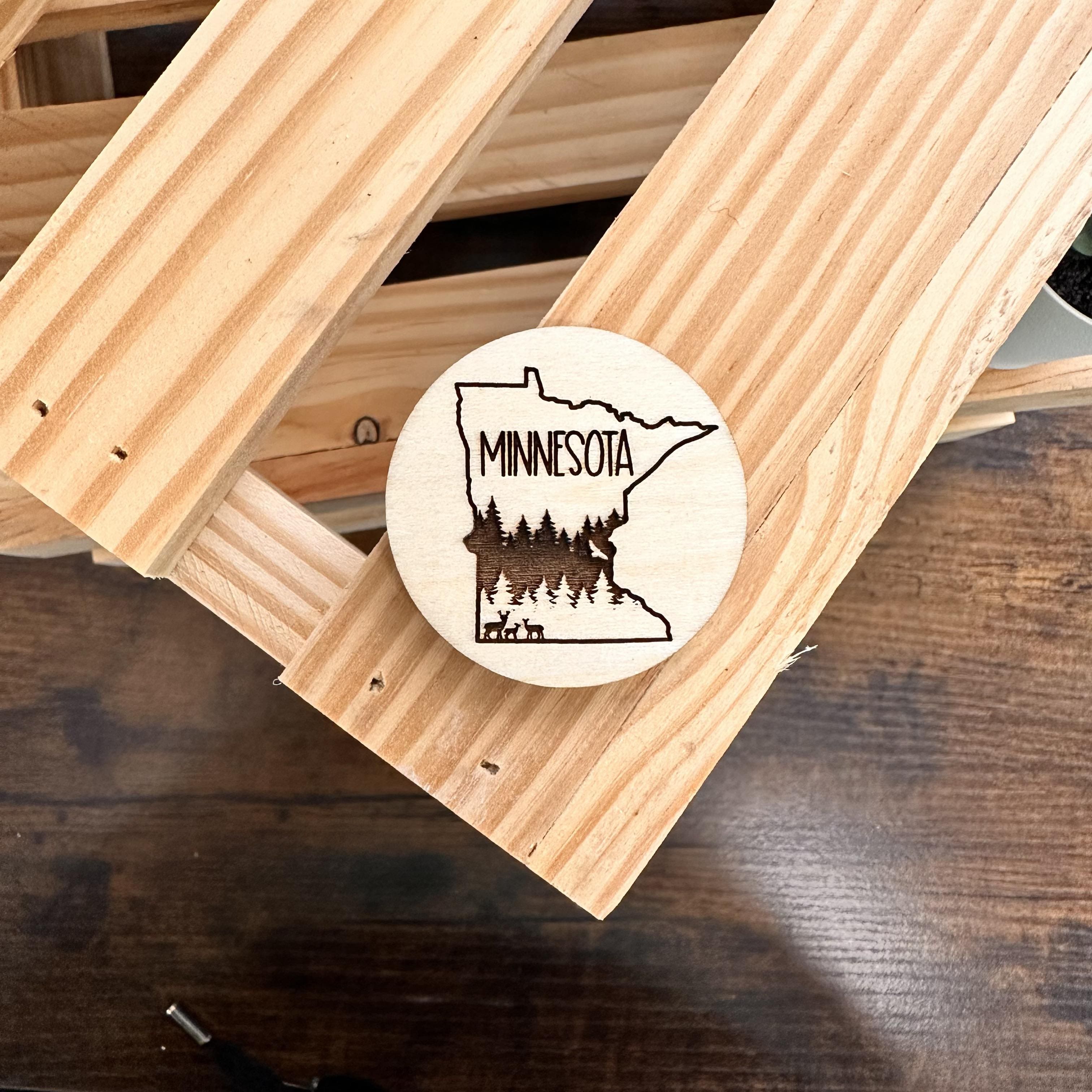 "Bring the beauty of Minnesota's scenic outdoors into your home with our Minnesota Trees wood magnet. Perfect for any nature lover, this magnet is a unique and charming addition to your fridge or magnetic surface. Show off your love for Minnesota with this charming wood magnet."