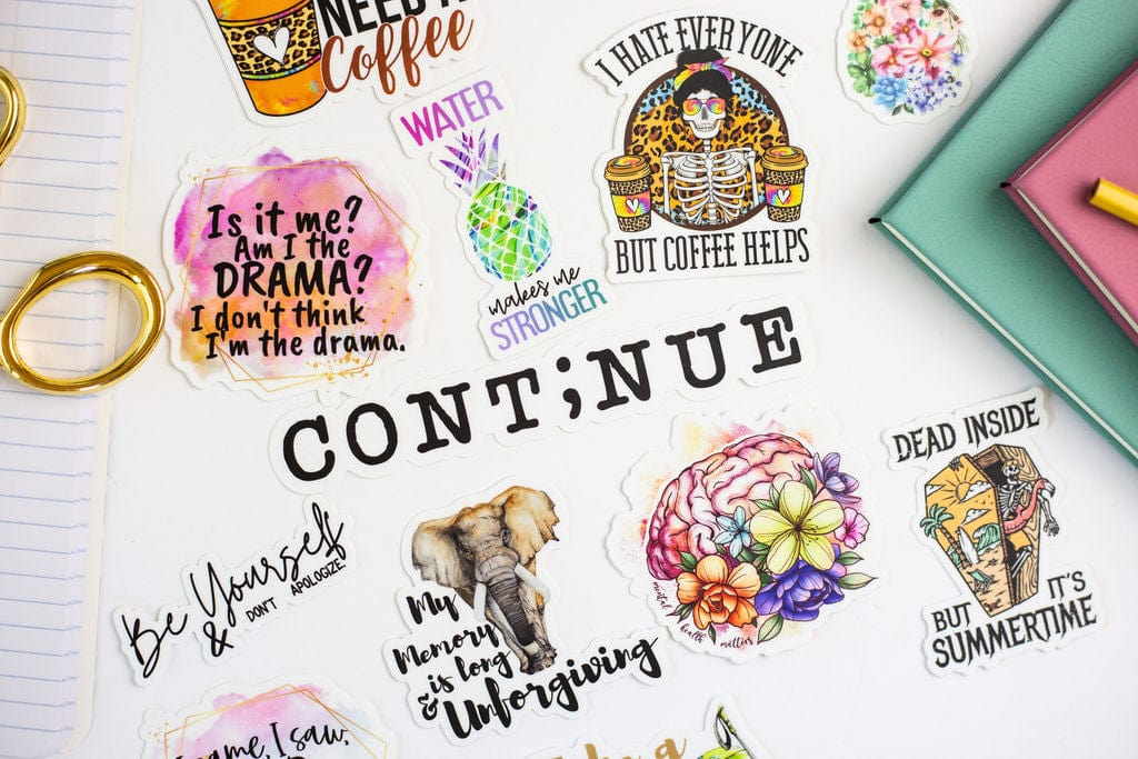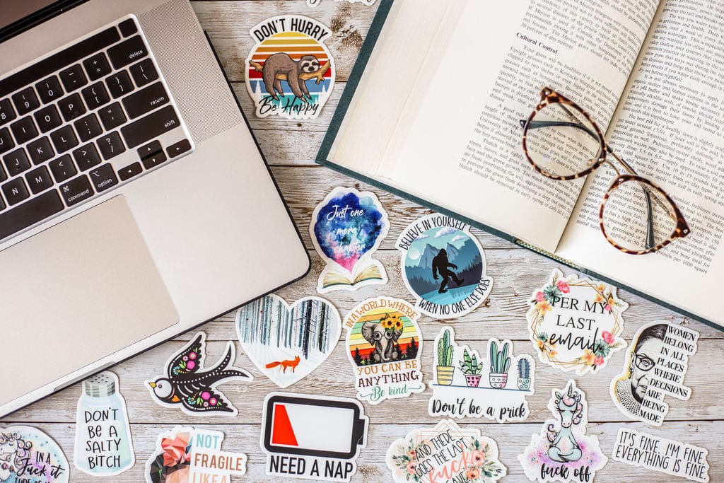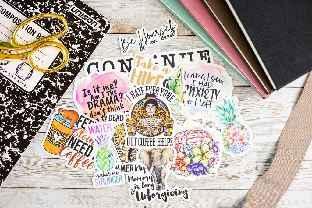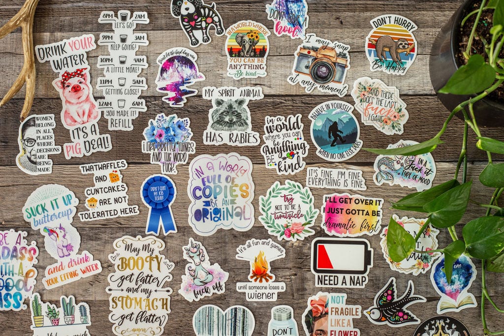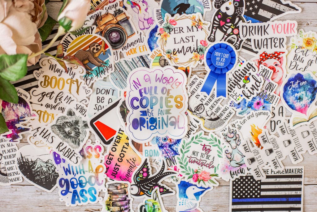 Now you can tell us about yourself in the notes section of this listing and we'll select 5, 10, or 20 stickers just for you! These could be stickers we currently offer on our website or stickers we haven't yet added to our website. Our stickers are able to withstand exposure to wind, rain, and sunlight. All of our stickers are printed on premium vinyl with a permanent adhesive and are coated with a protective laminate that makes them super durable and resistant to fading, scratching, tearing, oil, and water. They can even be safely run through a dishwasher. Though we do recommend hand washing our drinkware.