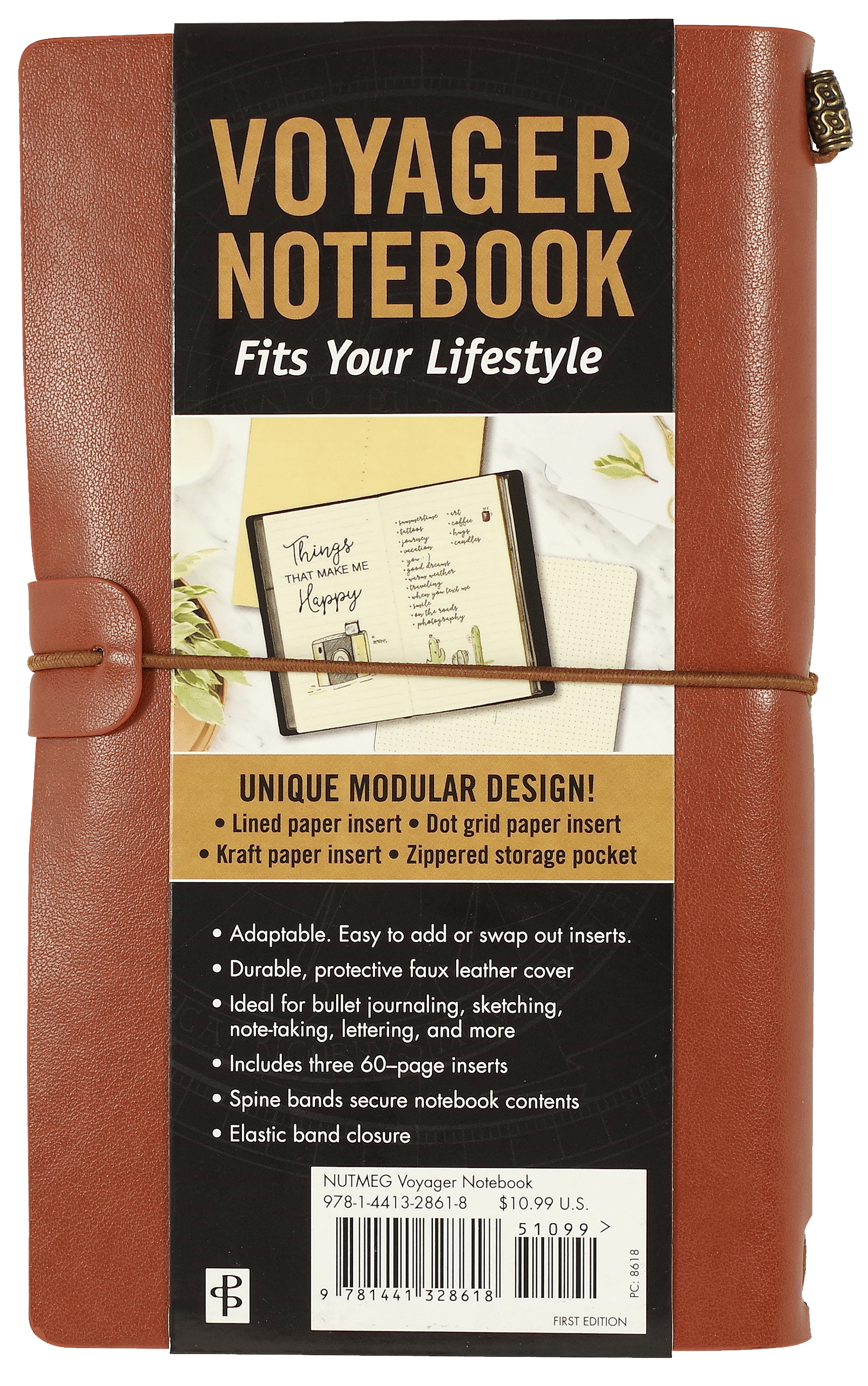 Your all-in-one notebook for ideas on the go. The Versatile Voyager Notebook features a flexible faux leather cover and three 60-page inserts—lined, dot-grid, and blank kraft paper. With built-in storage pockets, interior stretch bands, elastic closure, and premium 80 gsm archival paper, it keeps your notes, sketches, and plans beautifully organized. Compatible with most modular notebook refills.